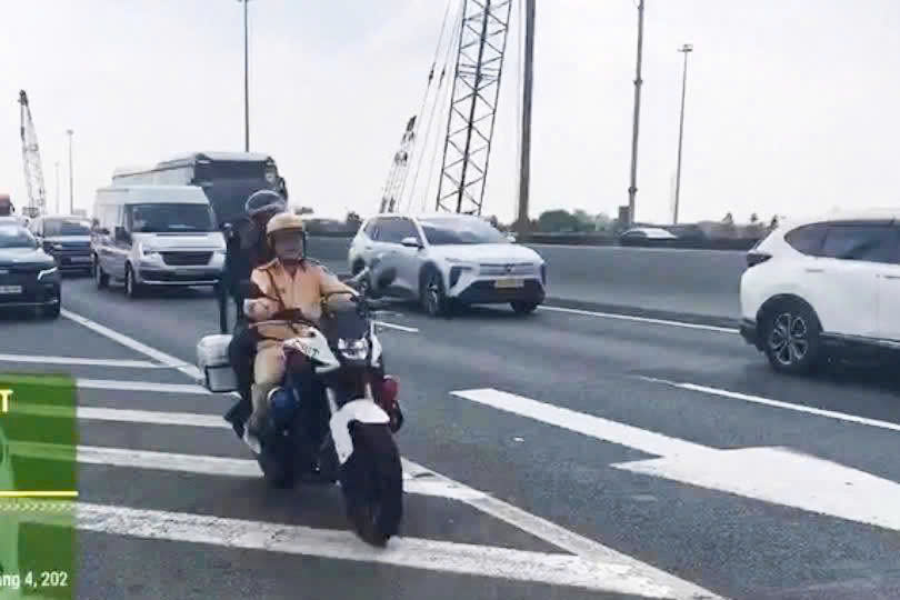 CSGT hướng dẫn ô tô chạy vào làn dừng khẩn cấp cao tốc. Ảnh: CSGTCT