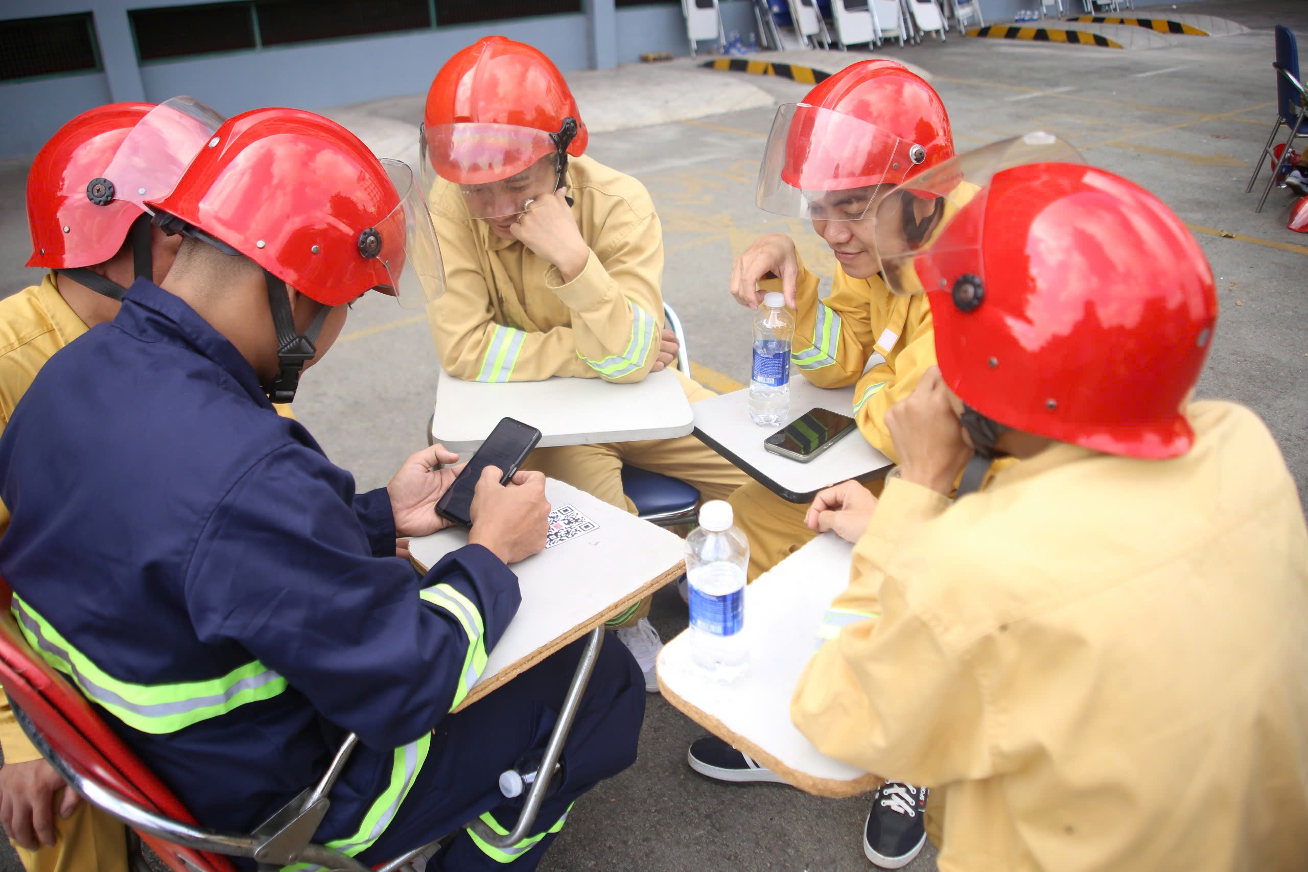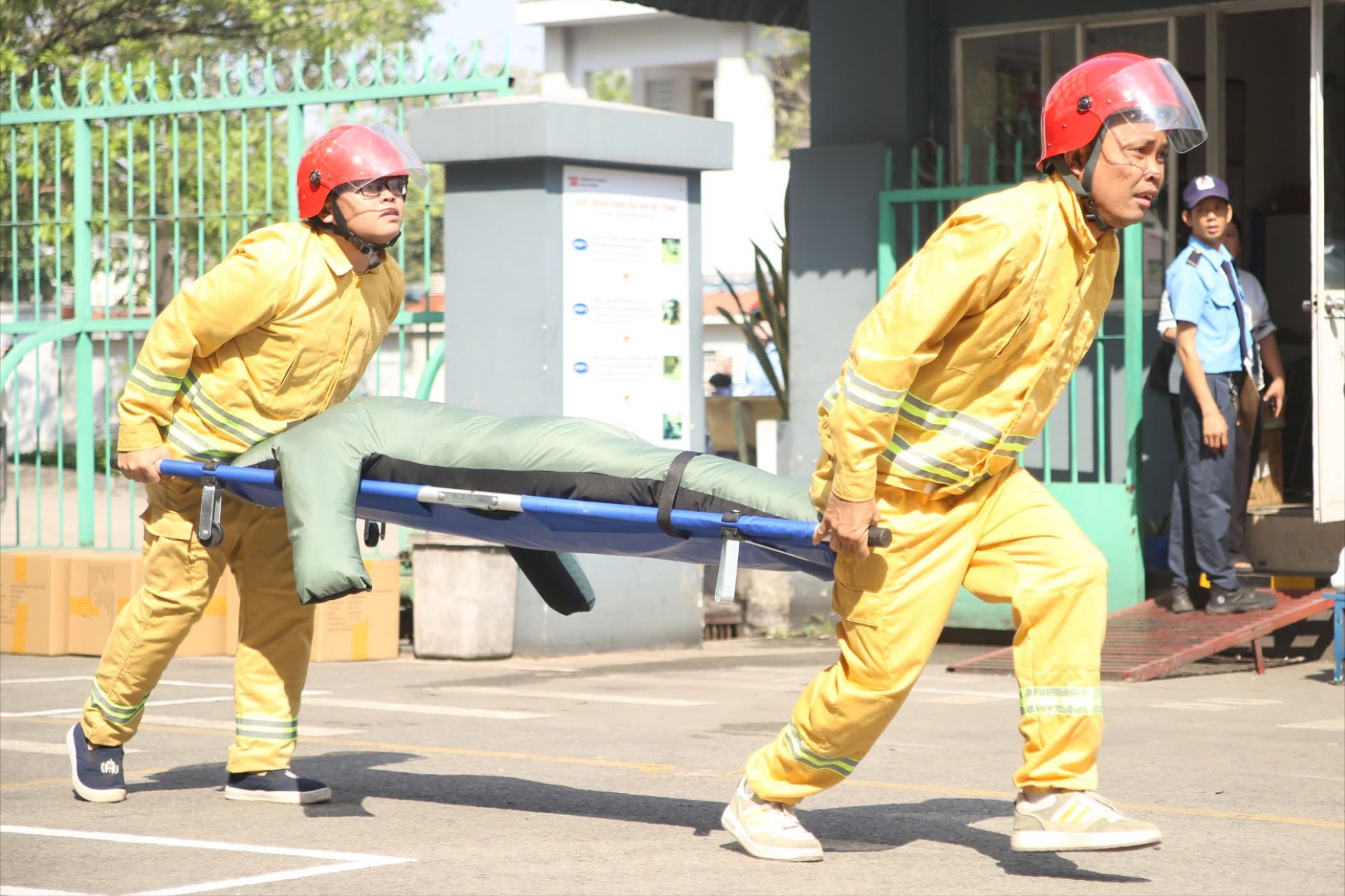 Bên cạnh hội thi, doanh nghiệp còn tổ chức diễn tập phương án thoát nạn nhằm nâng cao khả năng ứng phó thực tế cho người lao động khi xảy ra sự cố.