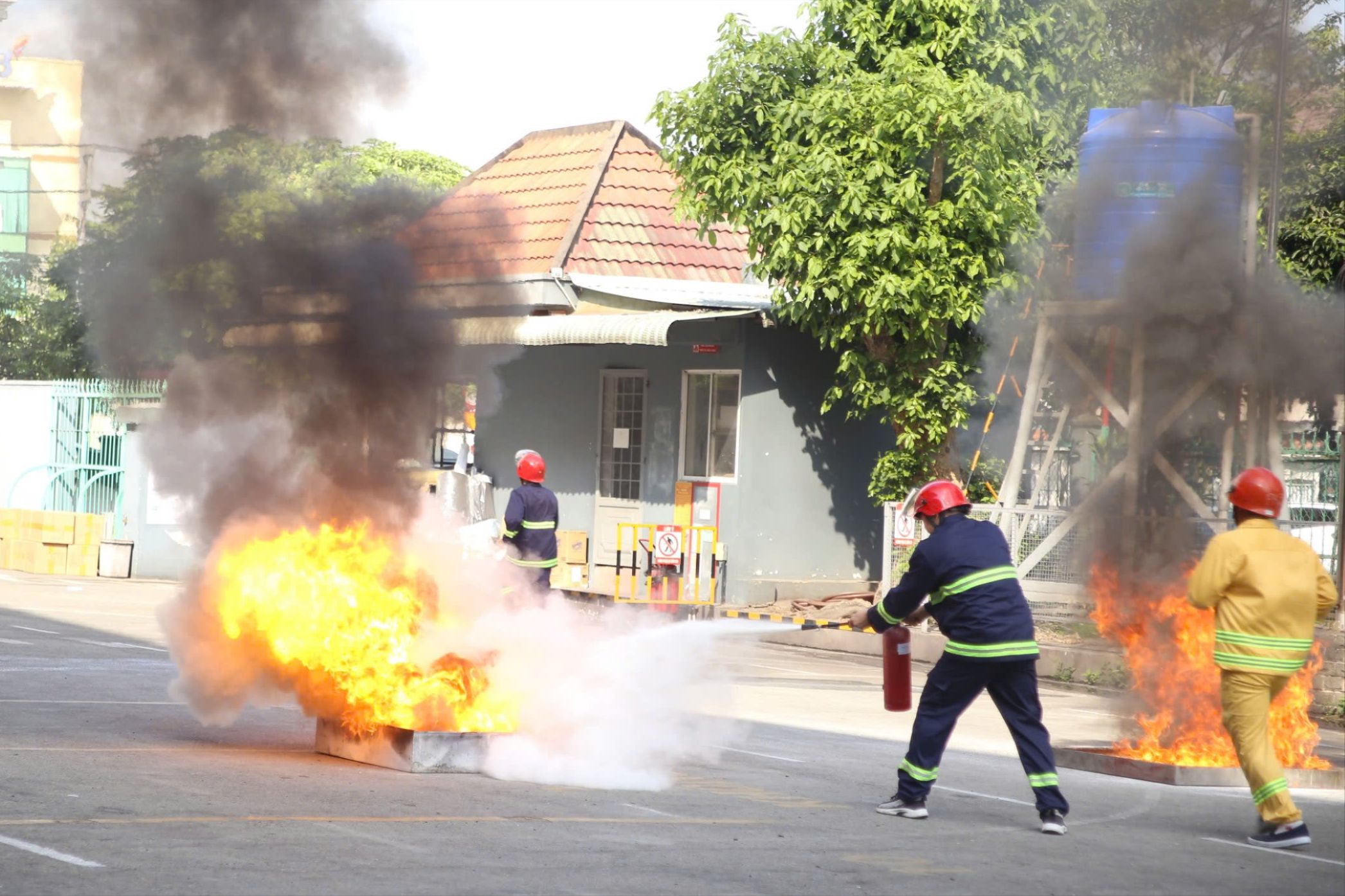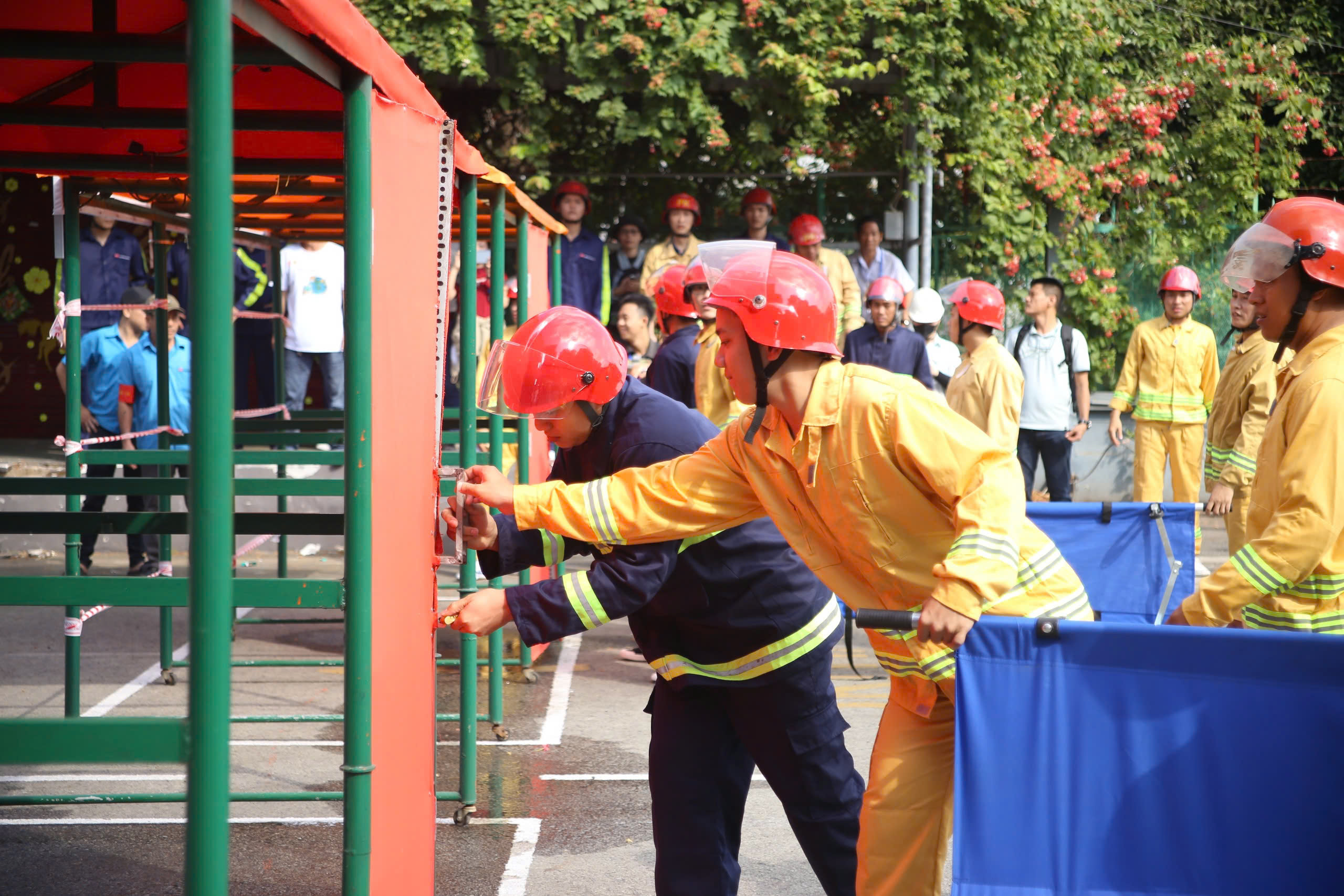 Hoạt động thi nhằm nâng cao kỹ năng chữa cháy, cứu nạn cứu hộ, khả năng phối hợp xử lý tình huống cho lực lượng PCCC cơ sở, góp phần bảo đảm an toàn tại doanh nghiệp. Ảnh: PHẠM HẢI