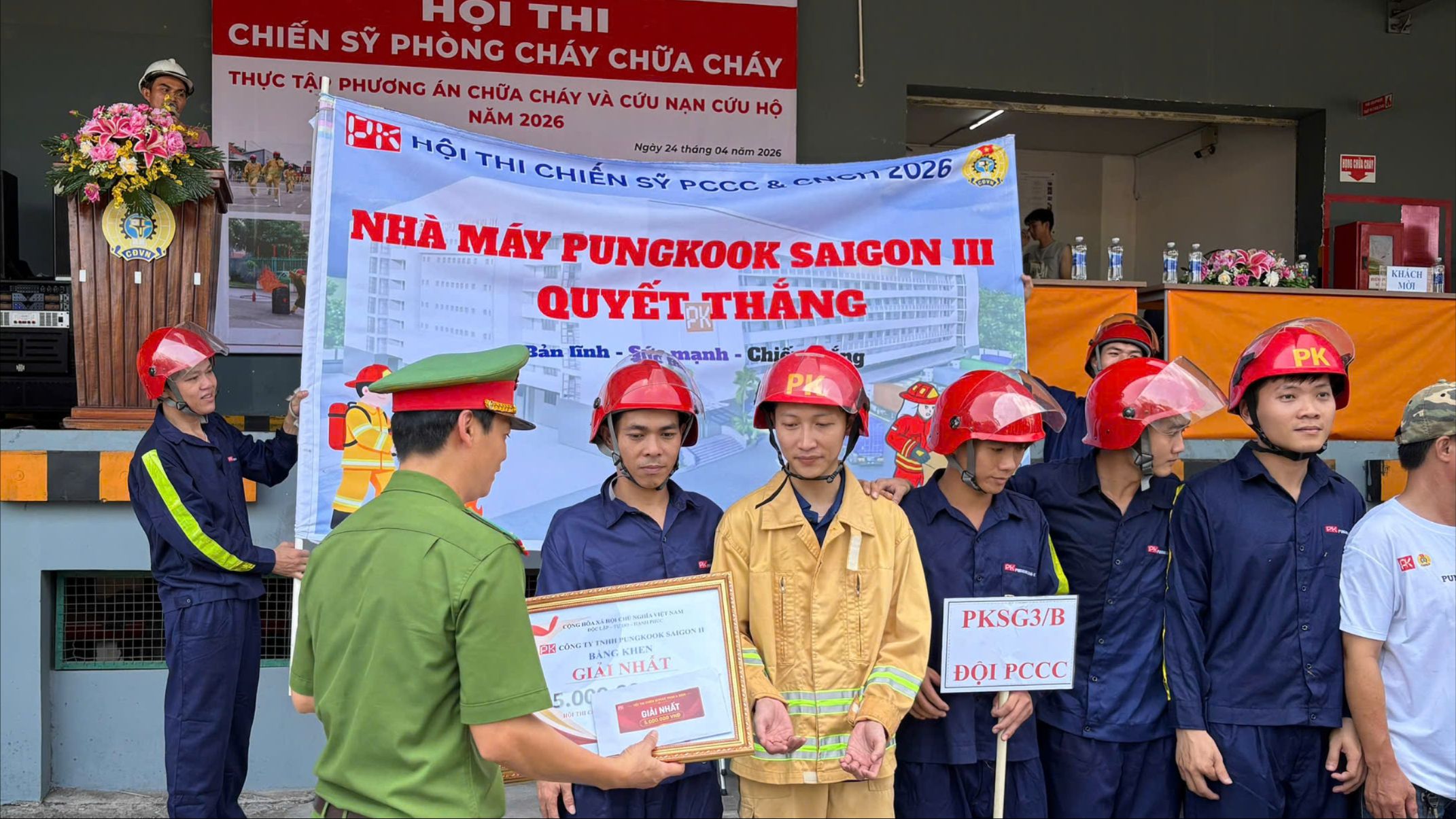 Ngày 24-4, Đội Chữa cháy và Cứu nạn cứu hộ khu vực 33, Phòng Cảnh sát PCCC và CNCH (PC07), Công an TP.HCM phối hợp Công ty TNHH Pungkook Sai Gon II tổ chức hội thi Chiến sĩ phòng cháy chữa cháy năm 2026.