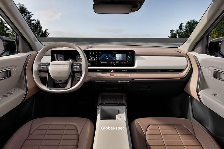 Điểm nổi bật bên trong cabin còn bao gồm màn hình đôi dạng cong 30 inch, vô lăng lấy cảm hứng từ Kia EV6, và khoang nội thất hai tông màu đen – trắng. Xe hỗ trợ sạc không dây, cổng USB-C cho cả hai hàng ghế, dàn âm thanh 8 loa Bose, điều hòa tự động hai vùng, ghế lái chỉnh điện 10 hướng có nhớ vị trí, ghế trước thông gió, rèm che nắng hàng ghế sau, và hệ thống đèn viền nội thất 64 màu.