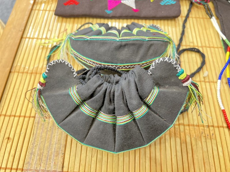 Ngoài váy áo, tại gian hàng, những người phụ nữ Dao Tiền còn làm các sản phẩm thủ công khác như túi đựng trầu, túi đeo vai... Ngay tại hội chợ, nhiều du khách dừng chân ngắm nhìn, hỏi chuyện và mua làm kỷ niệm.