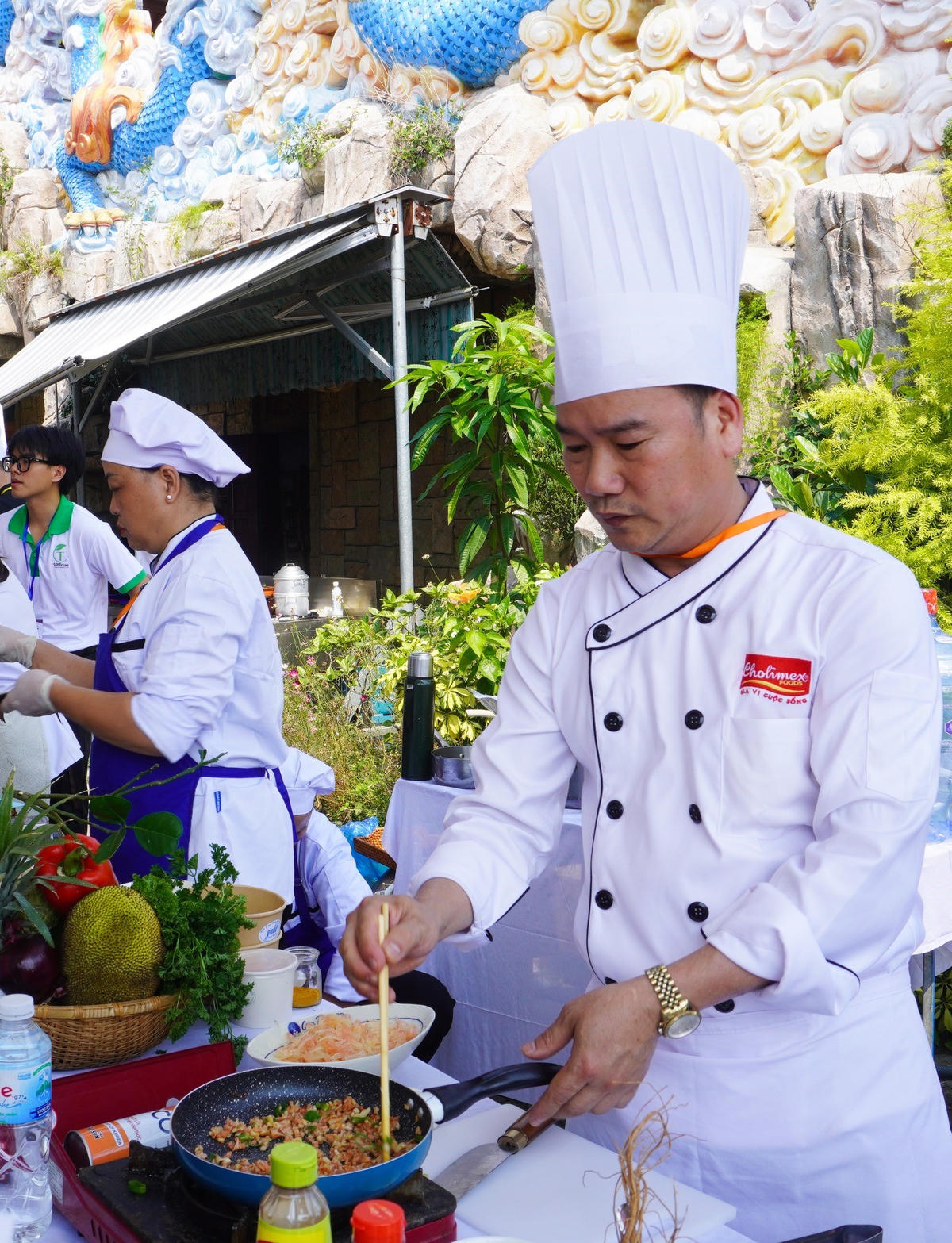 Lần đầu tiên diễn ra cuộc thi món chay tại Lễ hội Quán Thế Âm. Ảnh: Như Ý.