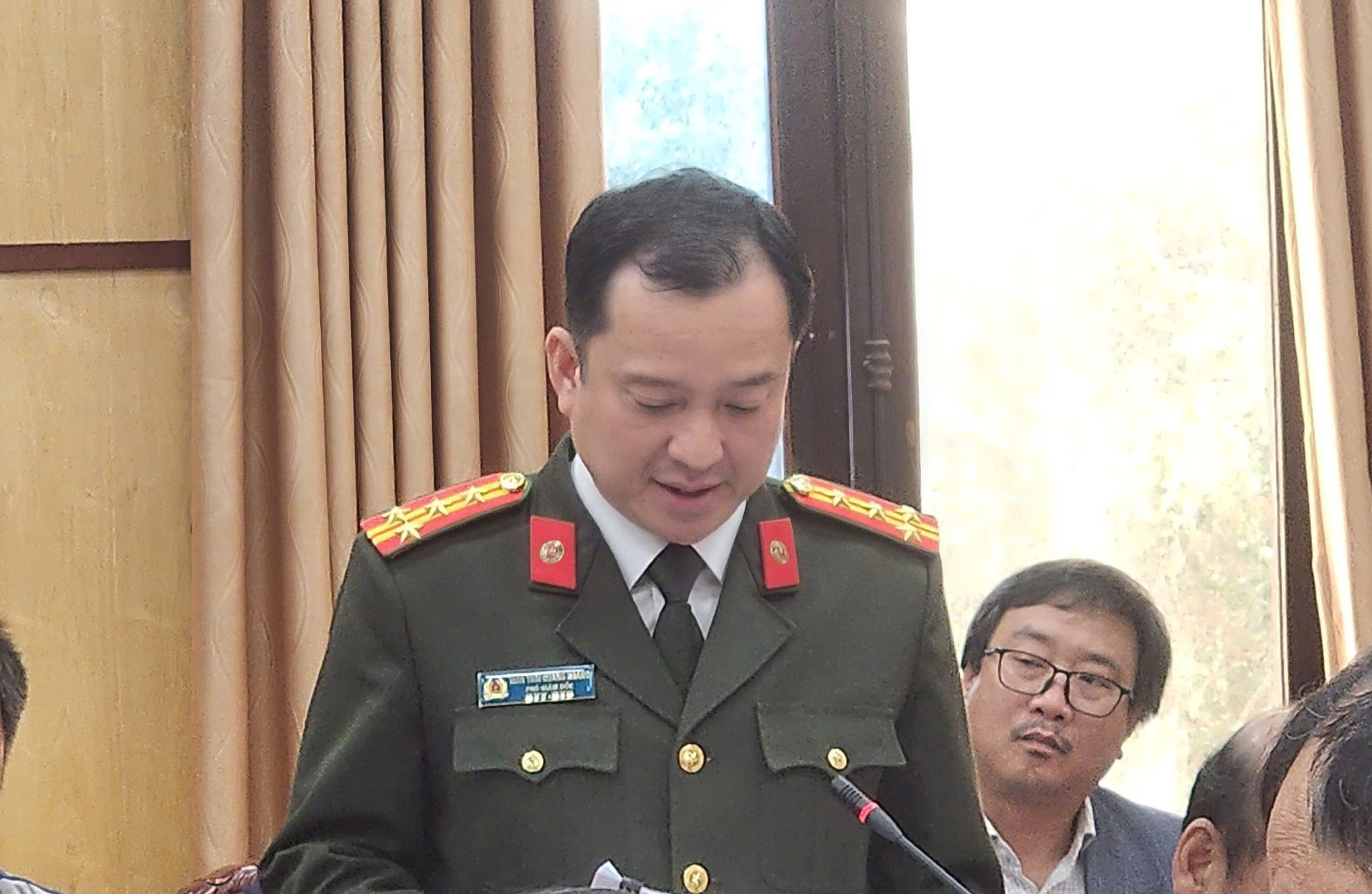 Đại tá Trần Thái Quang Hoàng thông tin tại buổi họp báo. Ảnh: Lê Dương
