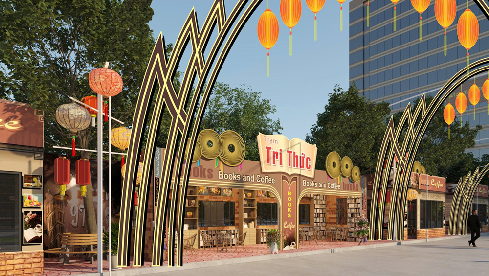 Bên cạnh đó là khu vực café đường sách; không gian thương mại du lịch để phục vụ hoạt động trải nghiệm, phát huy văn hóa đọc, mua sắm sản phẩm OCOP và quà lưu niệm, sản phẩm đặc trưng của địa phương và các vùng, miền; các hoạt động giải trí cộng đồng như âm nhạc đường phố, thể thao đường phố, checkin công nghệ Mapping 3D trên nền Quảng trường, thử làm liền anh liền chị, trải nghiệm robot phục vụ café, trải nghiệm photoboot miễn phí.