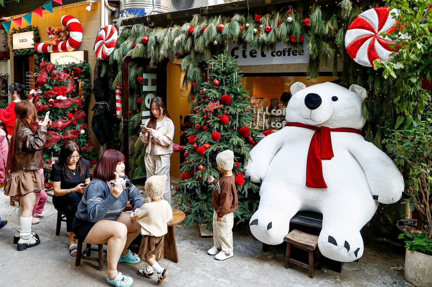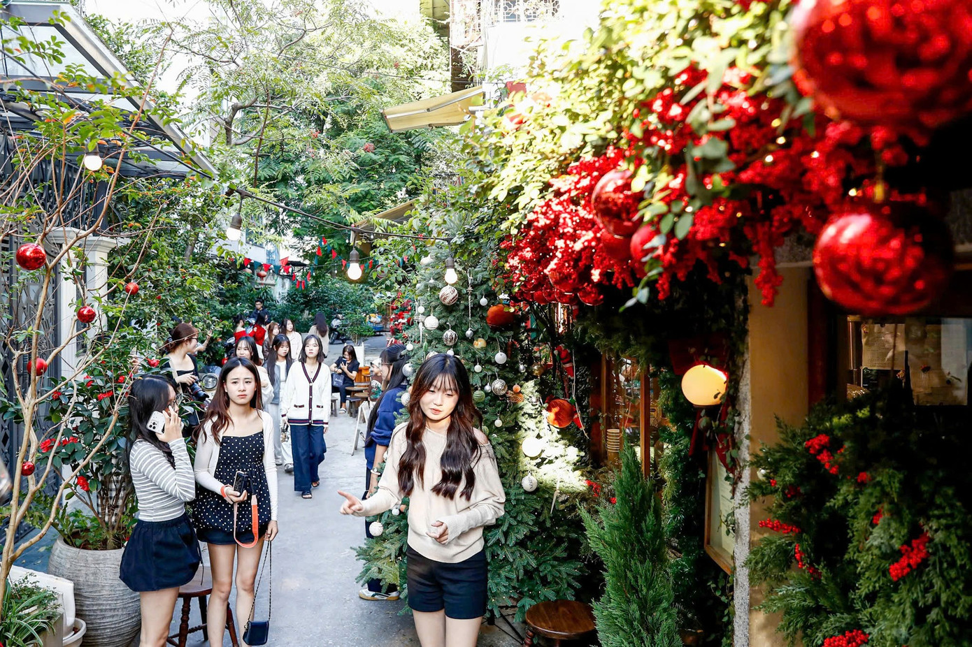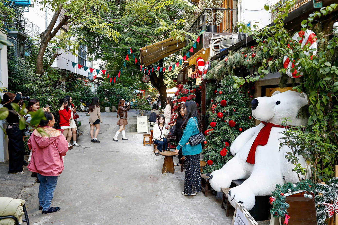 Không phải ai cũng có thời gian lên phố lớn, chen vào các góc chụp đông đúc như Hàng Mã. Bởi thế, những quán cà phê được xem như lựa chọn “vừa đẹp – vừa tiện – vừa chill”. Cứ thế, mùa Giáng sinh dường như đến sớm hơn với mỗi nhóm bạn tranh thủ giờ nghỉ trưa để chụp vài tấm, hay những đôi tình nhân nắm tay nhau giữa không gian huyền ảo.