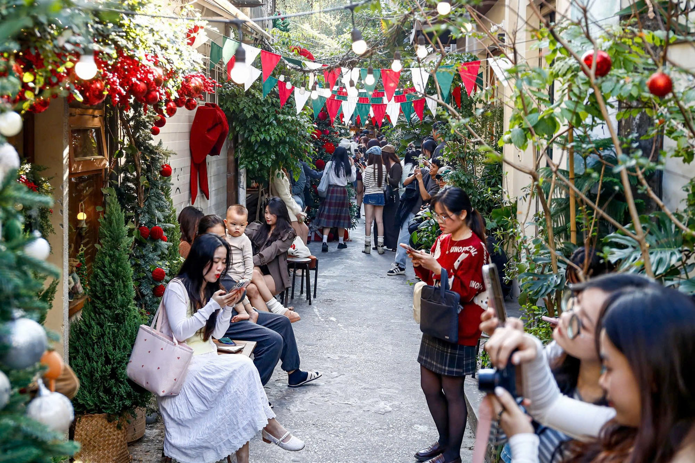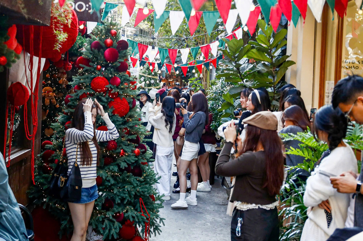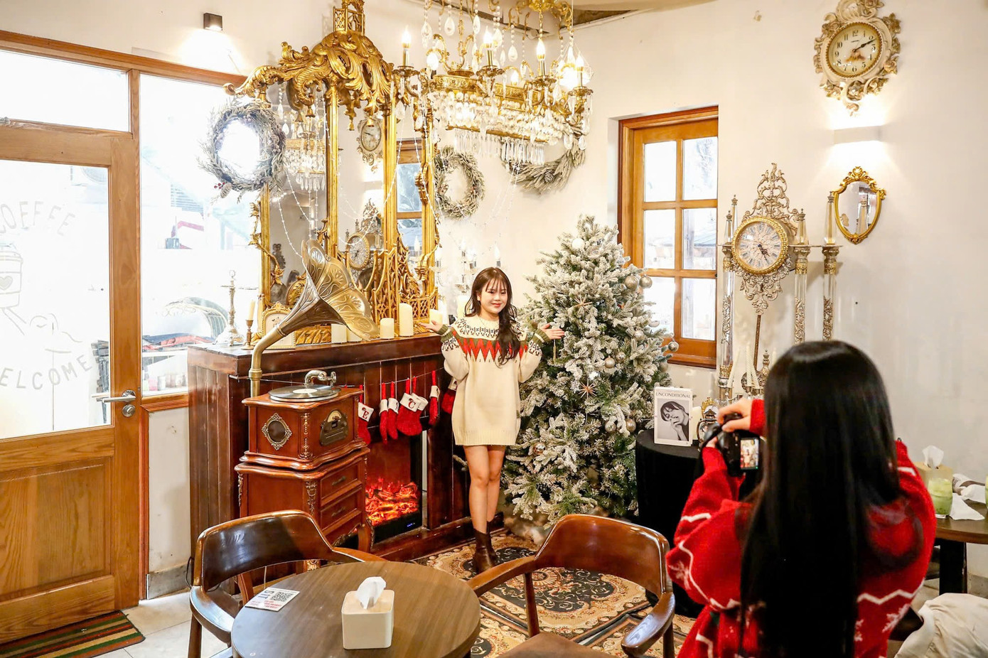 Không phải ai cũng có thời gian lên phố lớn, chen vào các góc chụp đông đúc như Hàng Mã. Bởi thế, những quán cà phê được xem như lựa chọn “vừa đẹp – vừa tiện – vừa chill”. Cứ thế, mùa Giáng sinh dường như đến sớm hơn với mỗi nhóm bạn tranh thủ giờ nghỉ trưa để chụp vài tấm, hay những đôi tình nhân nắm tay nhau giữa không gian huyền ảo.