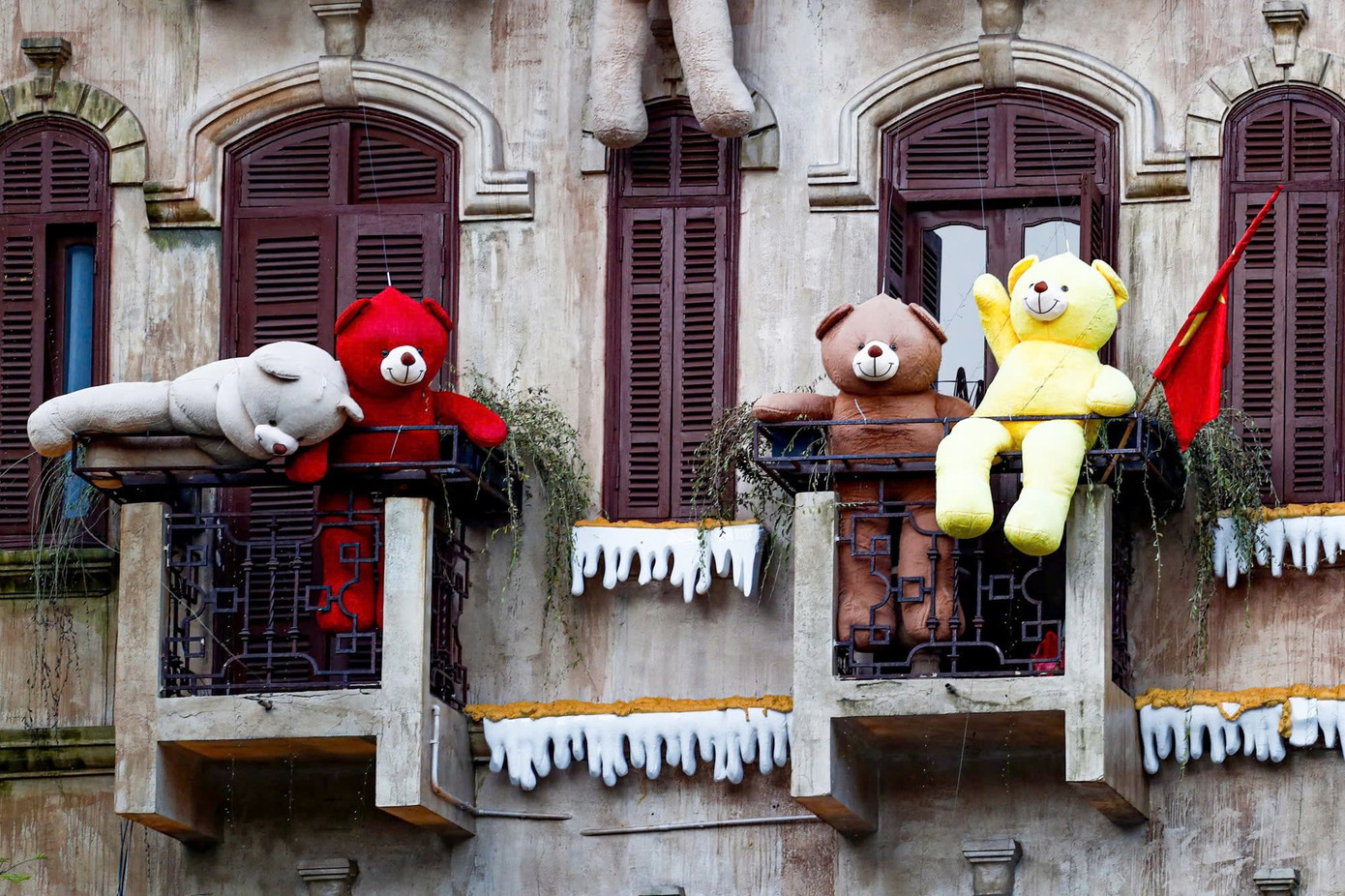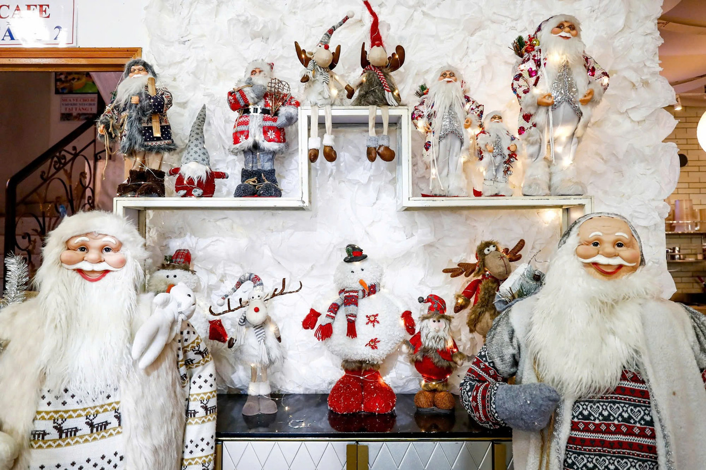 Những quán cà phê vốn quen thuộc bỗng biến thành “tiểu châu Âu” thu nhỏ với các chi tiết trang trí như ông già Noel vui nhộn, tuần lộc đáng yêu, hộp quà lấp lánh và cả những chú gấu bông khổng lồ nằm vắt vẻo bên khung cửa sổ.