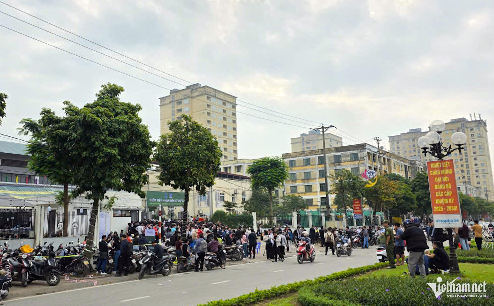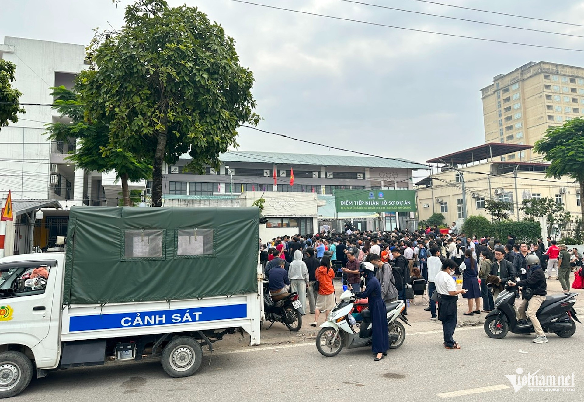 Dòng người đông đúc ở cổng Trung tâm Văn hóa - Thông tin và Thể thao xã Thiên Lộc trước giờ chủ đầu tư mở cửa nhận hồ sơ. Ảnh: Hồng Khanh