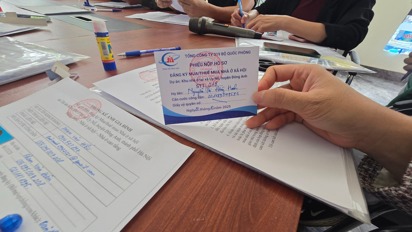 Từ ngày 21/10, chủ đầu tư là Tổng công ty 319 Bộ Quốc phòng bắt đầu nhận hồ sơ mua nhà ở xã hội Uy Nỗ (xã Đông Anh, Hà Nội). Theo ghi nhận, mặc dù đến 8 giờ 30 phút, chủ đầu tư mới tiếp nhận hồ sơ nhưng ngay từ 7 giờ, dòng người đã xếp thành hàng dài. Nhiều người cho biết, họ đã túc trực tại đây từ 2-4 giờ sáng để giữ chỗ để được nộp sớm.
