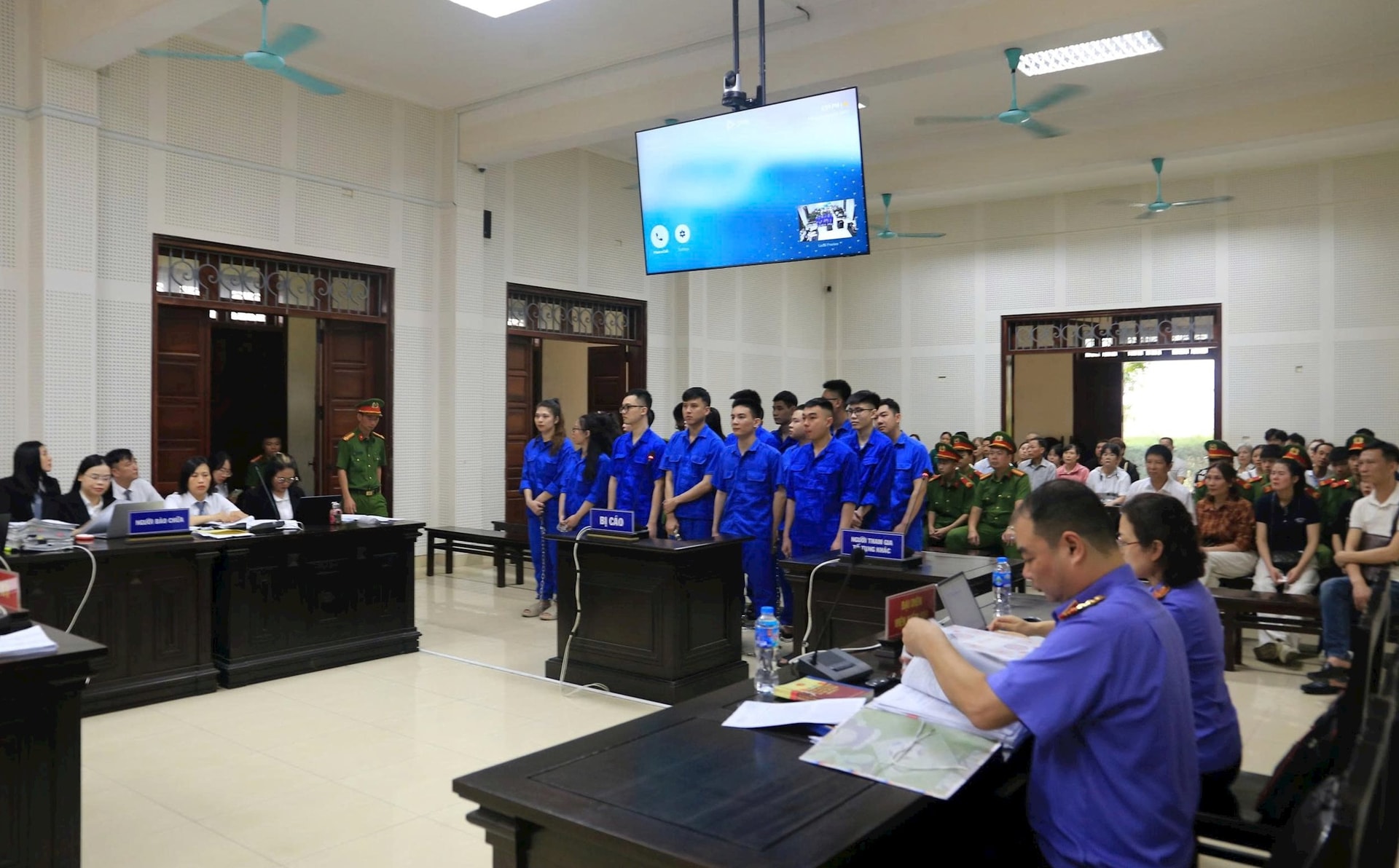Các bị cáo tại phiên tòa. (Ảnh: TV)