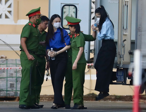 Khoảng 7h sáng, Nguyễn Thúc Thùy Tiên và các bị cáo được dẫn giải tới tòa.