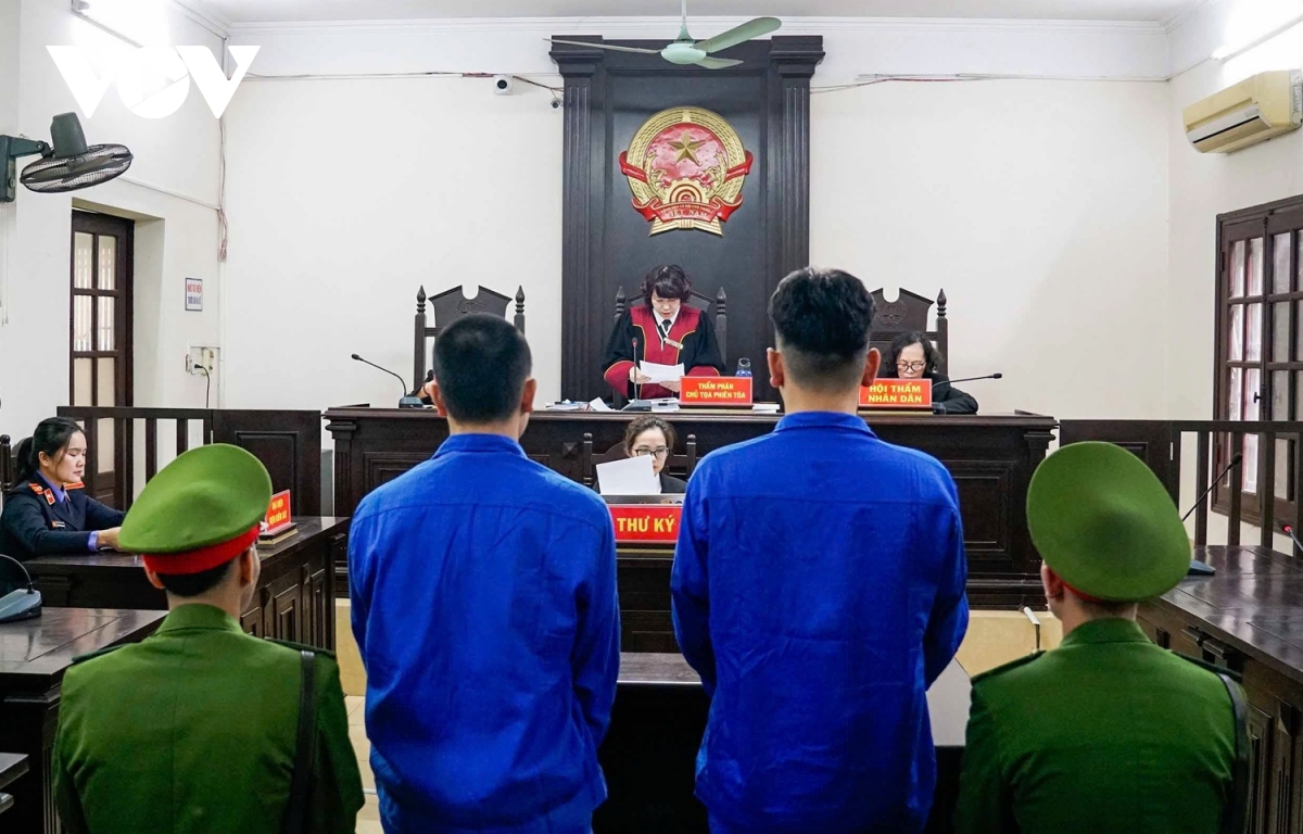 Hai bị cáo Thiên (trái) và Vũ tại phiên tòa. (Ảnh: Trọng Phú)