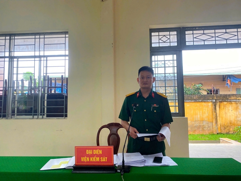 Đại diện Viện kiểm sát Quân sự Quân khu 7 công bố cáo trạng tại phiên tòa.
