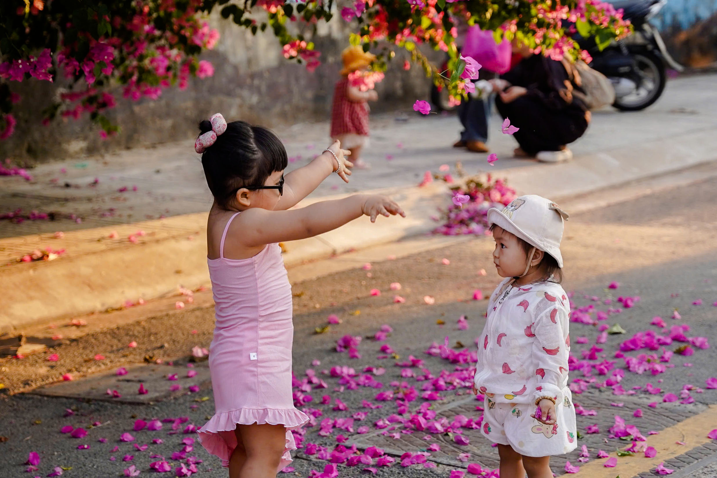 Các em bé cũng được bố mẹ đưa đến đây để chụp hình kỷ niệm.
