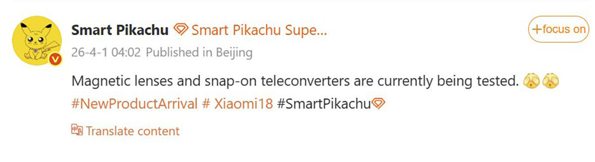 Dòng Xiaomi 18 có thể sở hữu hệ thống ống kính từ tính