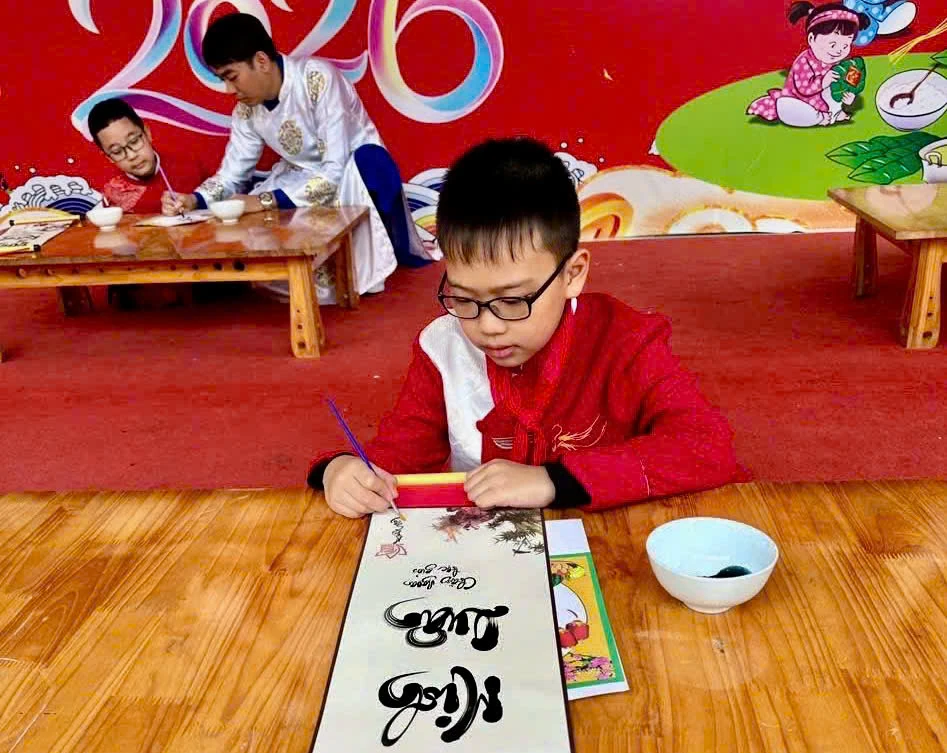 Hình ảnh tại buổi ngoại khóa “Khai bút đầu xuân - Đón lộc an lành” tại Trường Tiểu học Điện Biên 2.