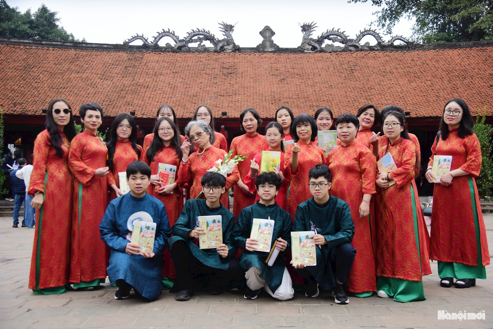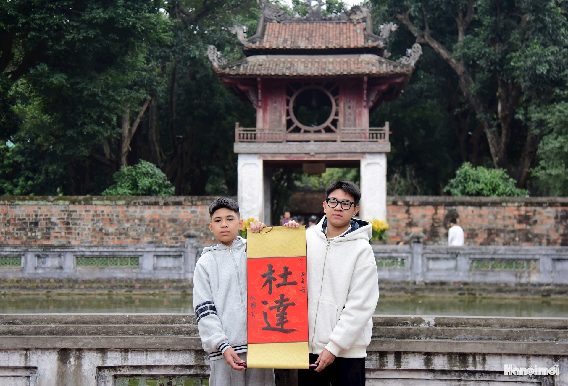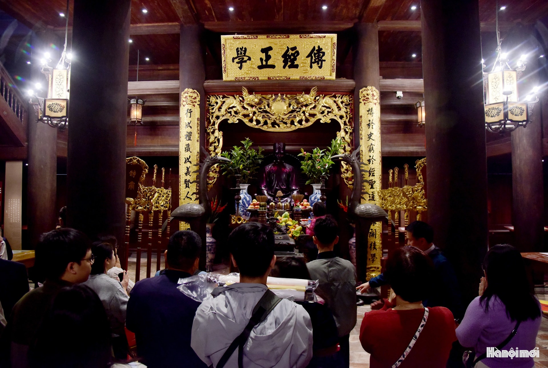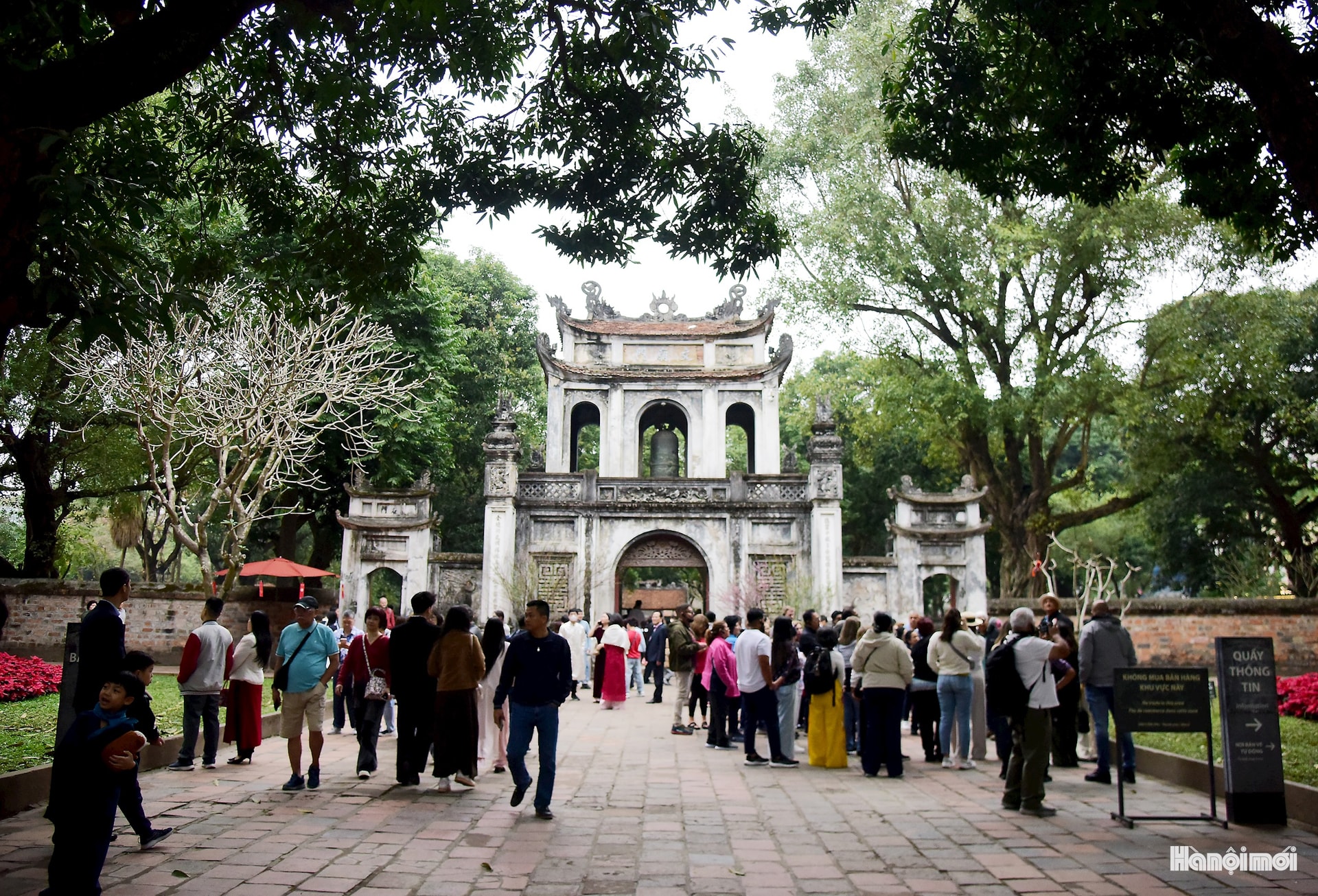 Đặc biệt, rất đông học sinh, sinh viên với tâm niệm đầu xuân năm mới đến cầu mong được học hành tiến bộ, đỗ đạt thành tài. Không khí lễ hội xuân tưng bừng cả bên ngoài và trong khuôn viên Văn Miếu - Quốc Tử Giám.