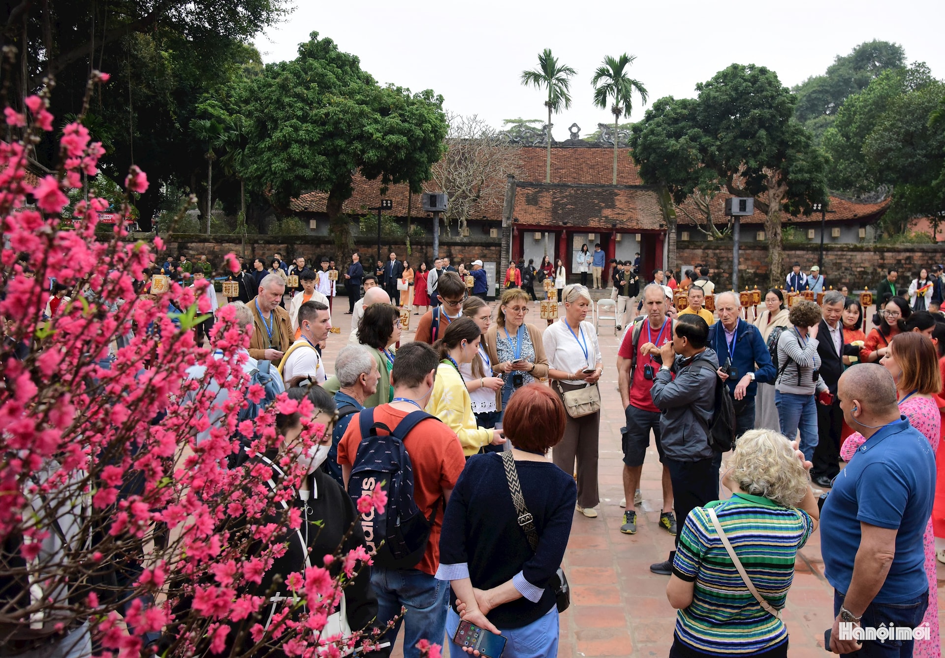 Du khách quốc tế tham quan Văn Miếu - Quốc Tử Giám trong những ngày đầu Xuân để tìm hiểu thêm những nét đẹp văn hóa của người Việt.