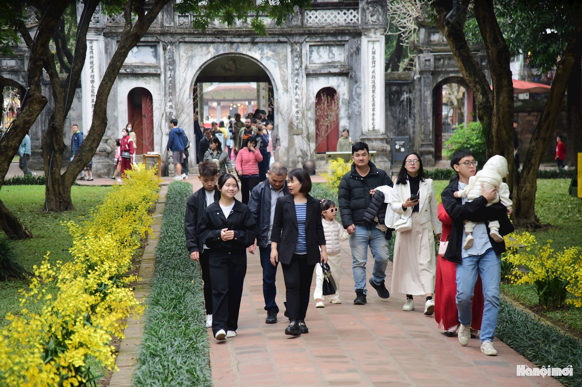 Sớm mùng 2 Tết Bính Ngọ 2026, Văn Miếu - Quốc Tử Giám đón nhiều gia đình đưa con em tới du xuân, vãn cảnh. Dịp đầu năm, đây là điểm đến quen thuộc của người dân Thủ đô.