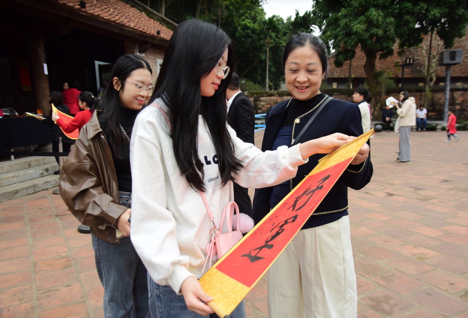 Sau khoảng thời gian chờ đợi khá dài, các bạn trẻ hân hoan nhận được chữ mình xin và chăm chú ngắm từng nét bút.
