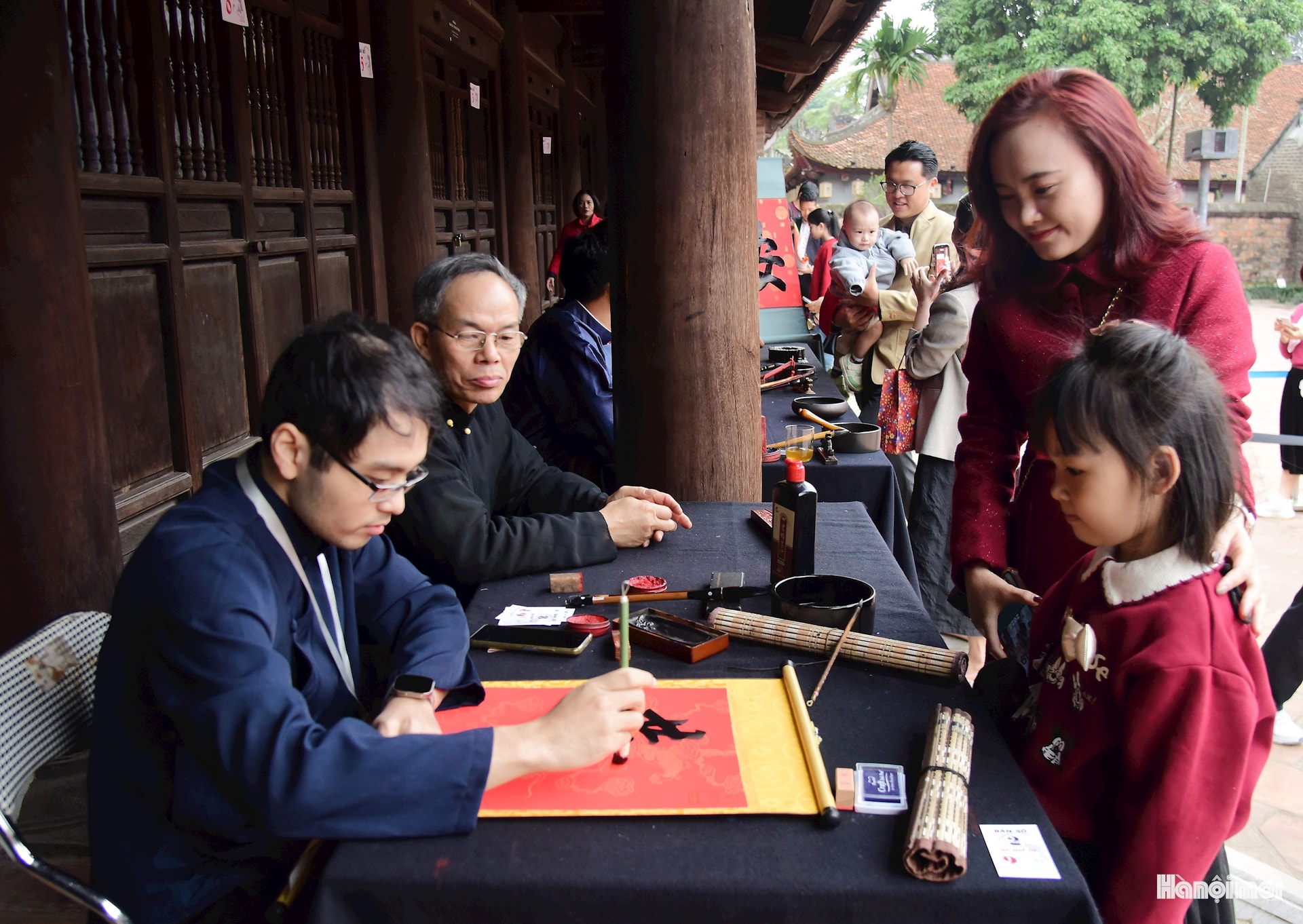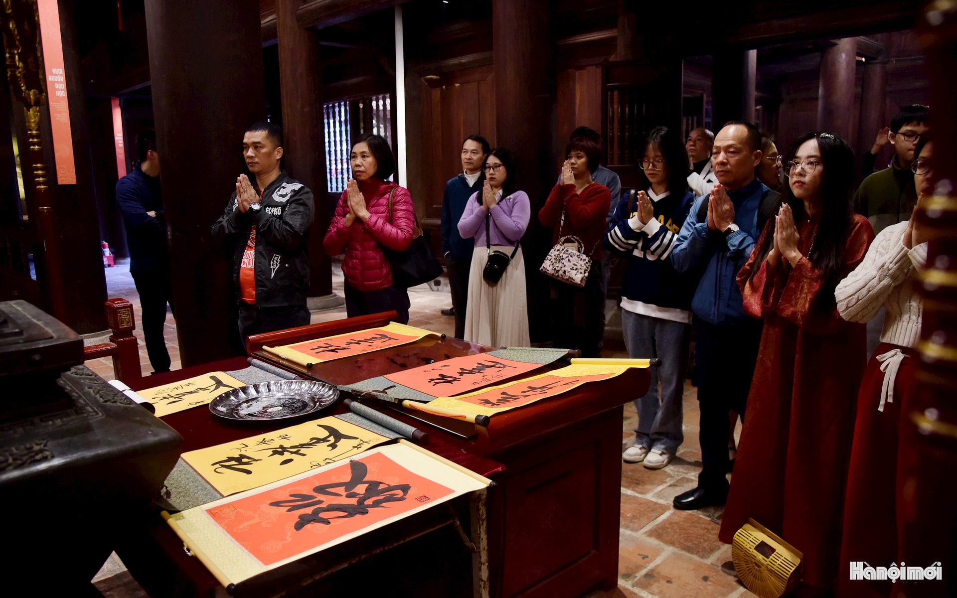 Ngoài việc tham quan, nhiều người đến Văn Miếu đầu năm để xin chữ, gửi gắm ước vọng.