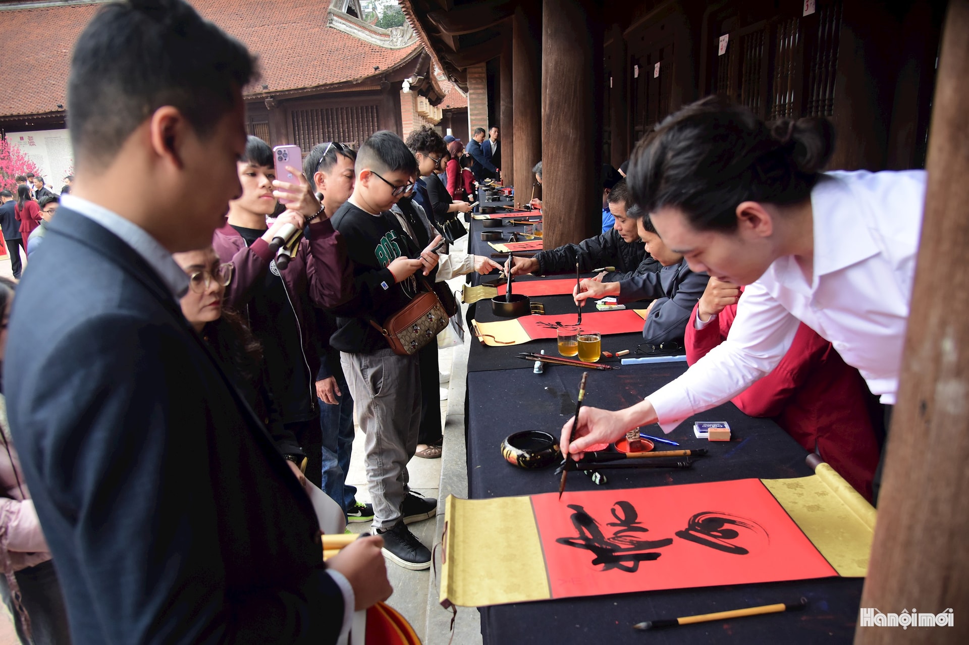 Tại khu vực Hồ Văn thuộc Di tích quốc gia đặc biệt Văn Miếu - Quốc Tử Giám, “Hội chữ Xuân Bính Ngọ 2026” được tổ chức với 35 gian lều thư pháp, thu hút đông đảo du khách tới tham quan và trải nghiệm.