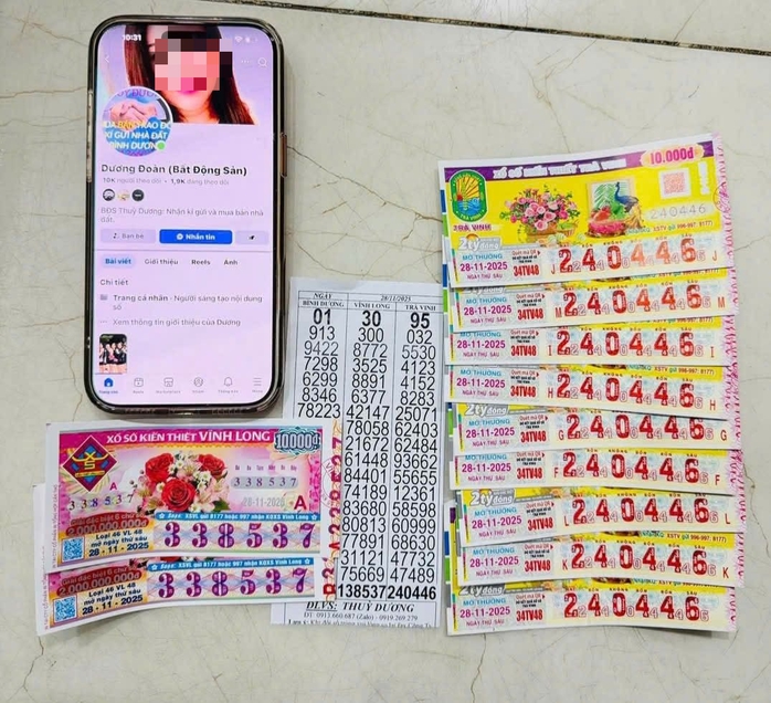 Chiều 29-11, liên quan giải đặc biệt của xổ số miền Nam, chị Thùy Dương, chủ đại lý vé số Thùy Dương ở phường Thủ Dầu Một, TPHCM cho biết vừa đổi thưởng xong cho một khách hàng trúng giải đặc biệt (dãy số 240446) 9 tờ vé số Trà Vinh, do Công ty TNHH Một thành viên Xổ số kiến thiết Trà Vinh mở thưởng chiều 28-11.