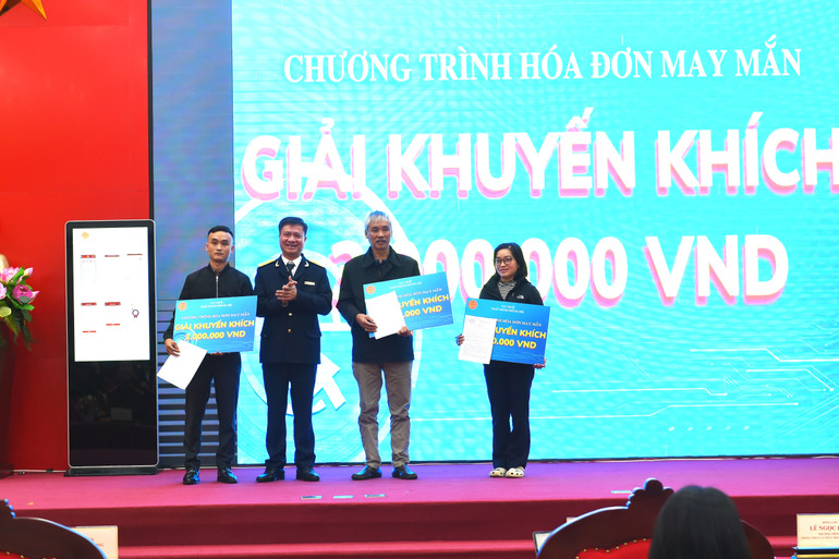 Các hộ kinh doanh nhận giải thưởng hóa đơn may mắn.