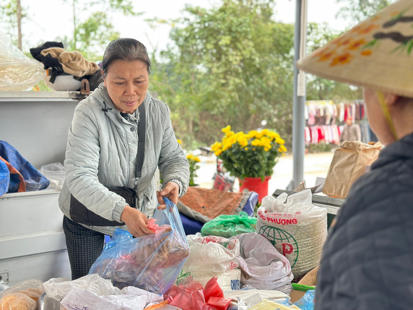 Bà Nguyễn Thị Hải bán những món hàng đầu tiên tại khu chợ mới