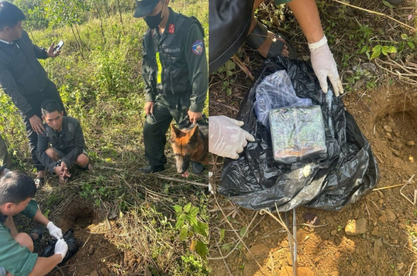 Cơ quan Công an sử dụng chó nghiệp vụ tìm thấy ma túy đối tượng cất giấu dưới đất.