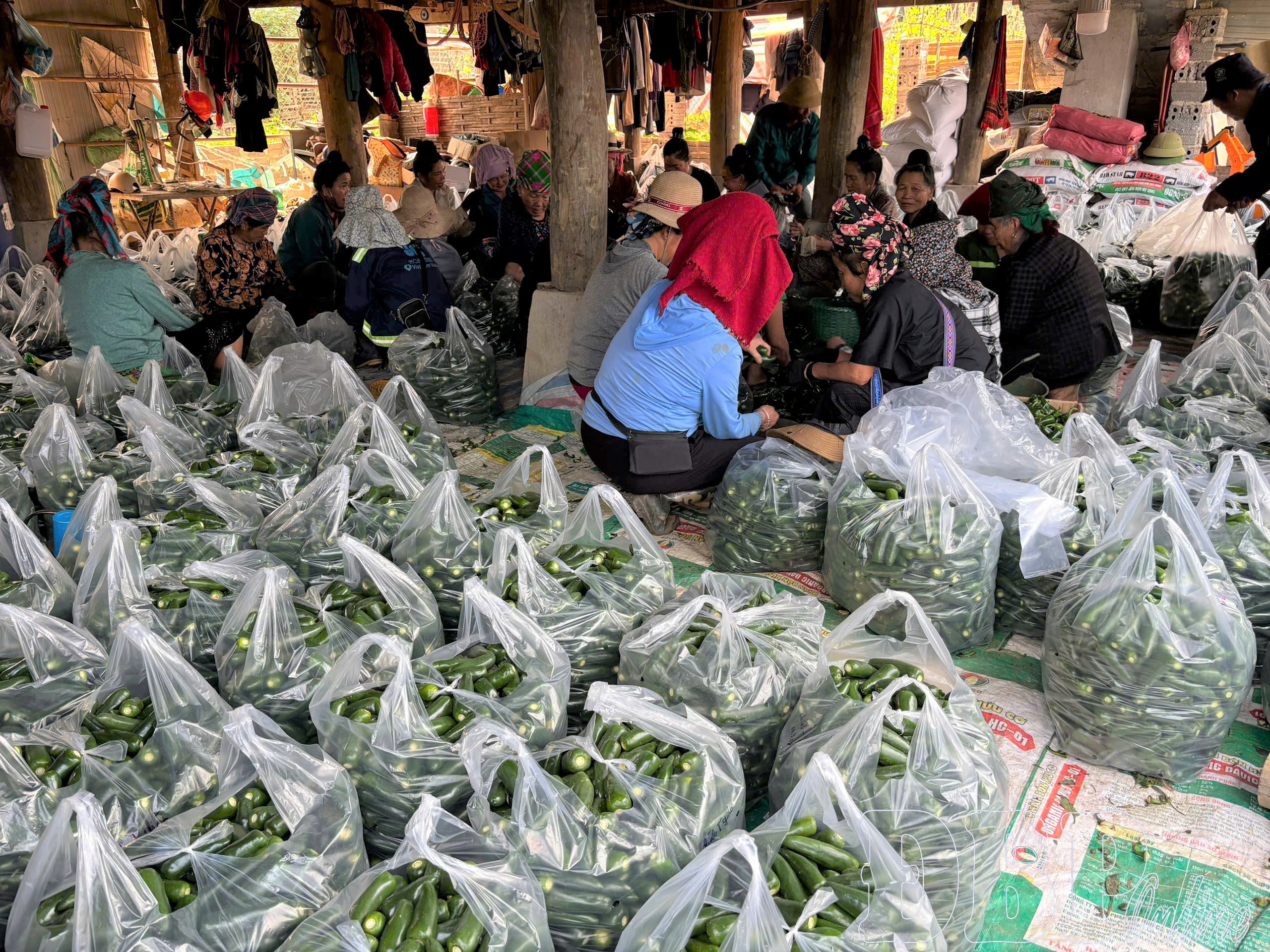 Người dân bản Phung, xã Tuần Giáo thu hoạch ớt J xanh.