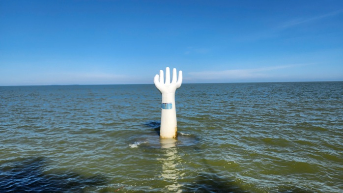 Đặc biệt, 5 bàn tay "khổng lồ" này có chân đế rất lớn, vào những ngày hè, khi nước biển dâng cao lên sát bờ kè làm cho những chân đế bằng bê-tông bị chìm sâu trong nước khiến người tắm không biết sẽ va vào, tiềm ẩn nguy hiểm.