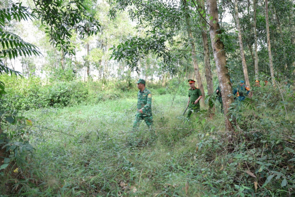 Công an xã Hưng Phước phối hợp với bộ đội Biên phòng tuần tra phòng, chống tội phạm, đặc biệt là tội phạm về ma túy trên tuyến biên giới.