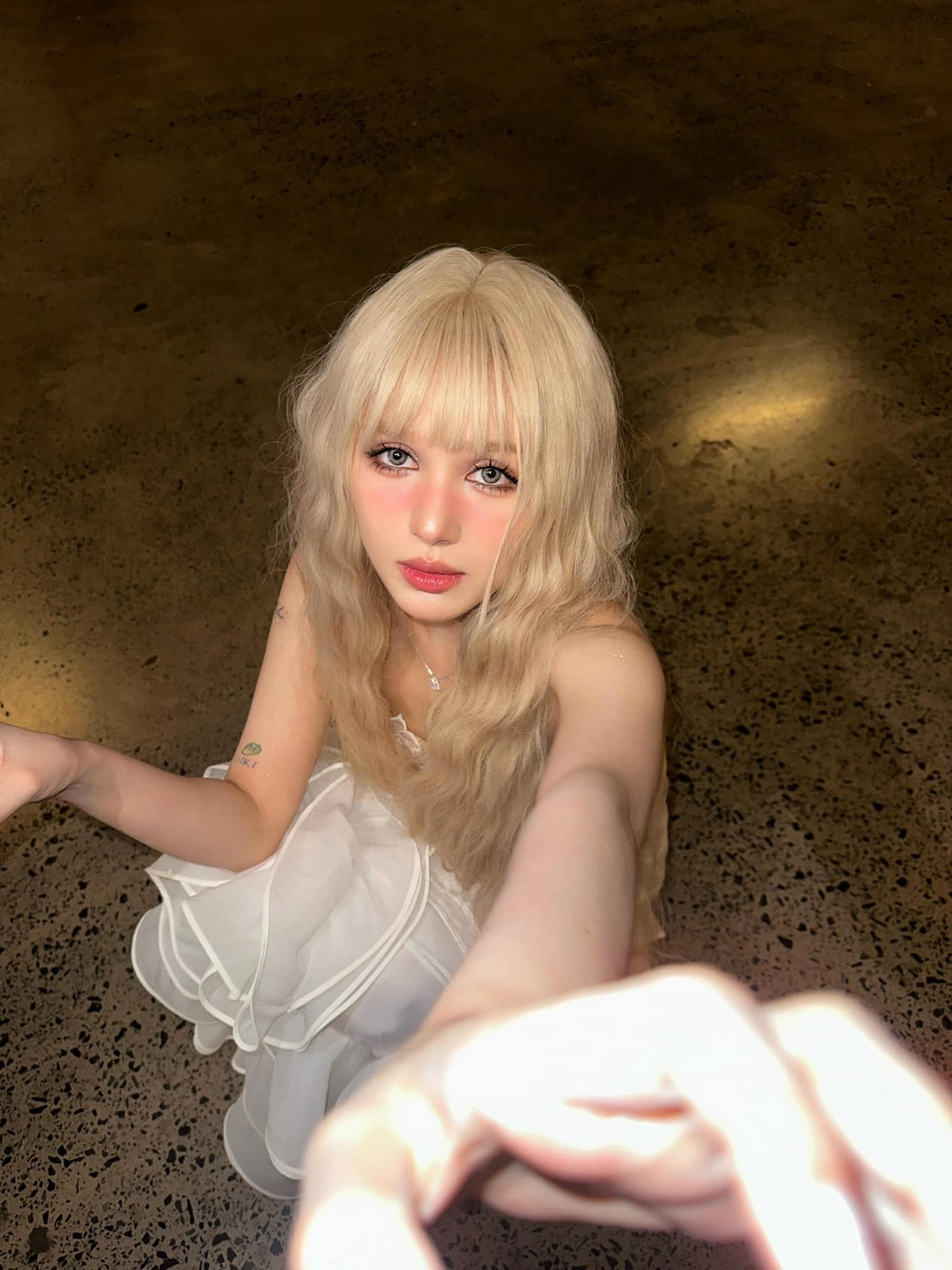 Khác hẳn những lần trang điểm đậm, sắc sảo trước đó, lần này Xoài Non lại lựa chọn layout makeup nhẹ nhàng, tập trung làm nổi bật những đường nét tự nhiên trên gương mặt như đôi mắt to tròn, sống mũi cao thẳng.