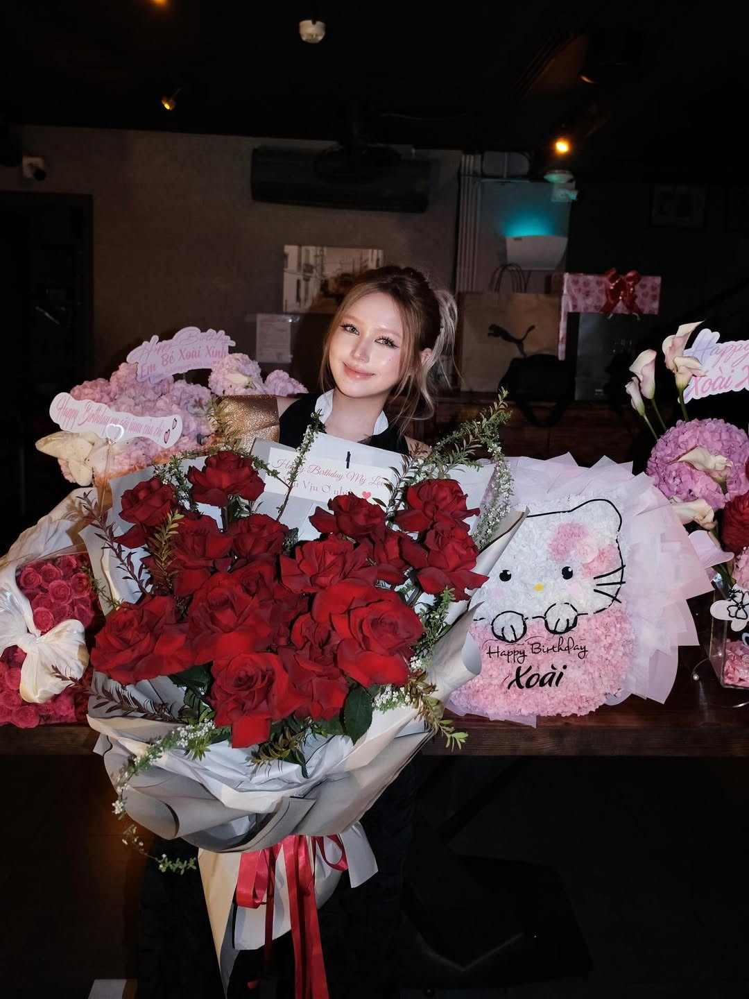 Sinh nhật tuổi 23 của Xoài Non ngập tràn trong hoa tươi và những món quà ý nghĩa. Cô nàng tạo dáng bên những người bạn thân thiết từ lâu như Sunna. (Ảnh: IGNV)