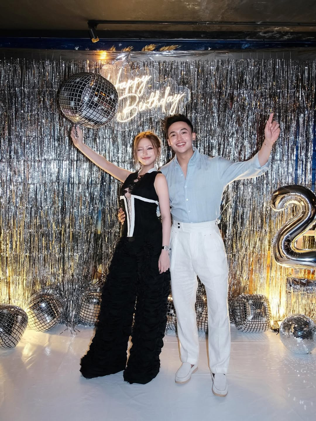Phông nền rèm kim tuyến cùng đèn neon chữ "Happy Birthday" và các quả cầu disco tạo nên một không gian vừa hiện đại vừa ấm cúng. (Ảnh: IGNV)