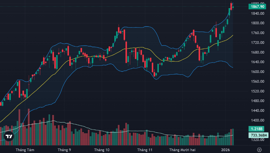 Chỉ số đóng cửa tăng 0,67% tương đương +12,34 điểm với 107 mã tăng/219 mã giảm. Điểm số này thậm chí tích cực hơn phiên sáng khi VN-Index chỉ tăng 0,04% với 117 mã tăng/191 mã giảm.