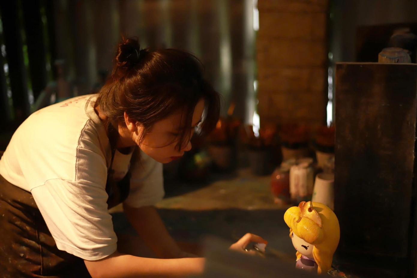 Sinh viên làm thêm ở một quán cà phê tô tượng để trang trải cho cuộc sống