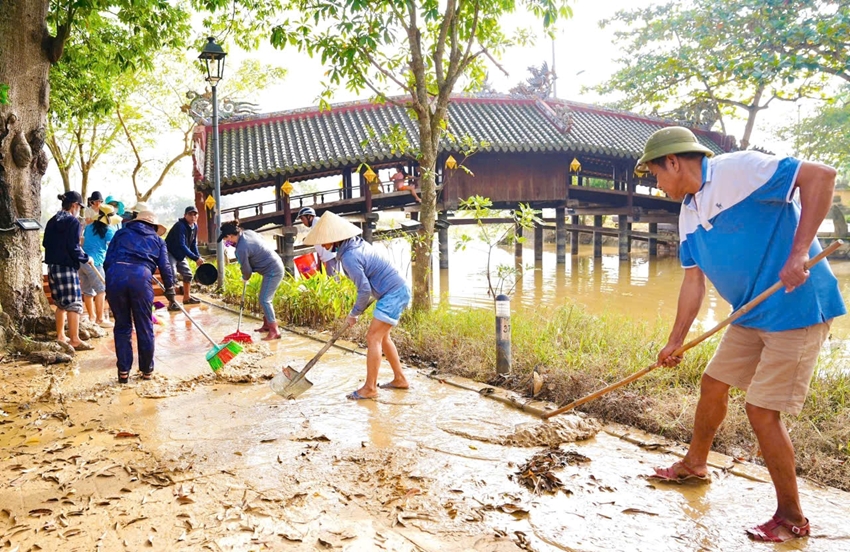 Các hoạt động dọn rác, bùn, rửa đường, trục vớt bèo tây… được triển khai ở những khu vực, điểm, tuyến đường… đang còn rác, bùn ứ đọng sau đợt mưa lụt vừa qua.
