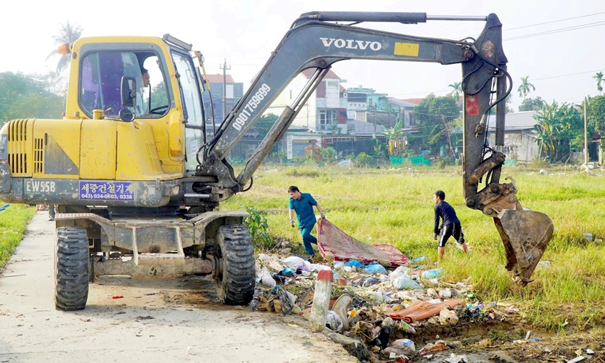 Huy động xe múc để thu gom rác thải... Ảnh: Đ.QUANG