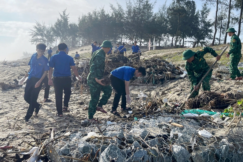 Ngoài các tuyến đường, một số bãi biển cũng được các lực lượng dọn dẹp vệ sinh... Ảnh: Q.ANH
