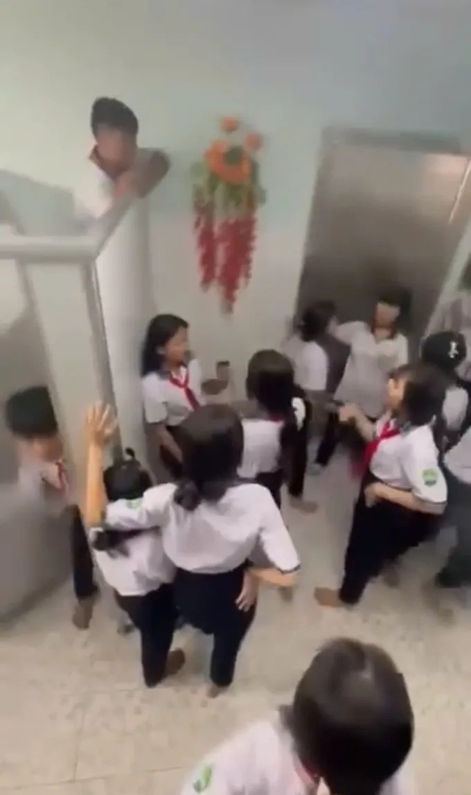 Đáng nói, xung quanh có rất nhiều học sinh khác đứng xem, reo hò, cười cợt mà không hề có hành động can ngăn nào. Thậm chí, một số em còn dùng điện thoại quay lại toàn bộ sự việc rồi tung lên mạng xã hội.