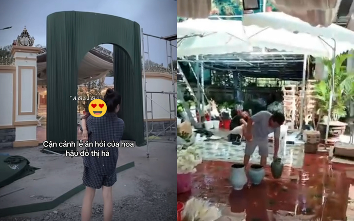 Theo hình ảnh do cư dân mạng lan chuyền, gia đình Đỗ Thị Hà đang tất bật trang trí nhà cửa để chuẩn bị cho ngày vui của nàng hậu. Ảnh: tiniphoido, tinhot_oday
