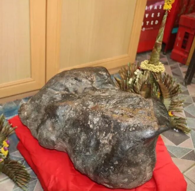 Hòn đá lạ thu hút sự chú ý của người dân địa phương. Ảnh: Siamrath