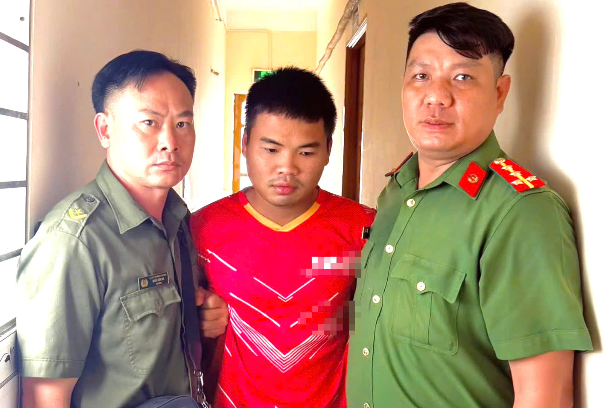 Nghi can Đinh Minh Đoàn (25 tuổi, quê TP.HCM) bị công an bắt giữ khi đang lẩn trốn tại một nhà nghỉ ở Đồng Nai. Ảnh: CA