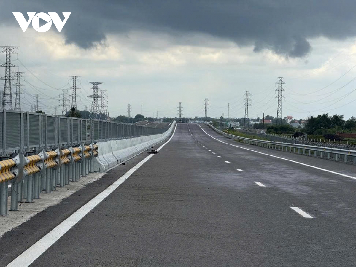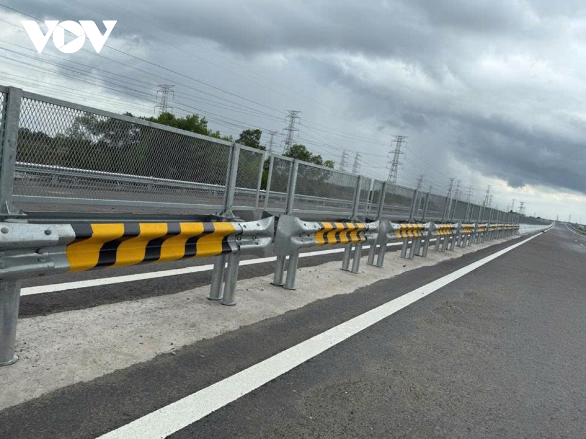 Đoạn cao tốc dài hơn 25km này như một dải lụa khổng lồ vắt ngang qua những cánh đồng, rừng tràm. Mặt đường đã được thảm nhựa láng mịn, hệ thống dải phân cách cứng, biển báo giao thông, lưới chống chói và hệ thống chiếu sáng đã được lắp đặt hoàn thiện, sẵn sàng cho ngày thông xe.