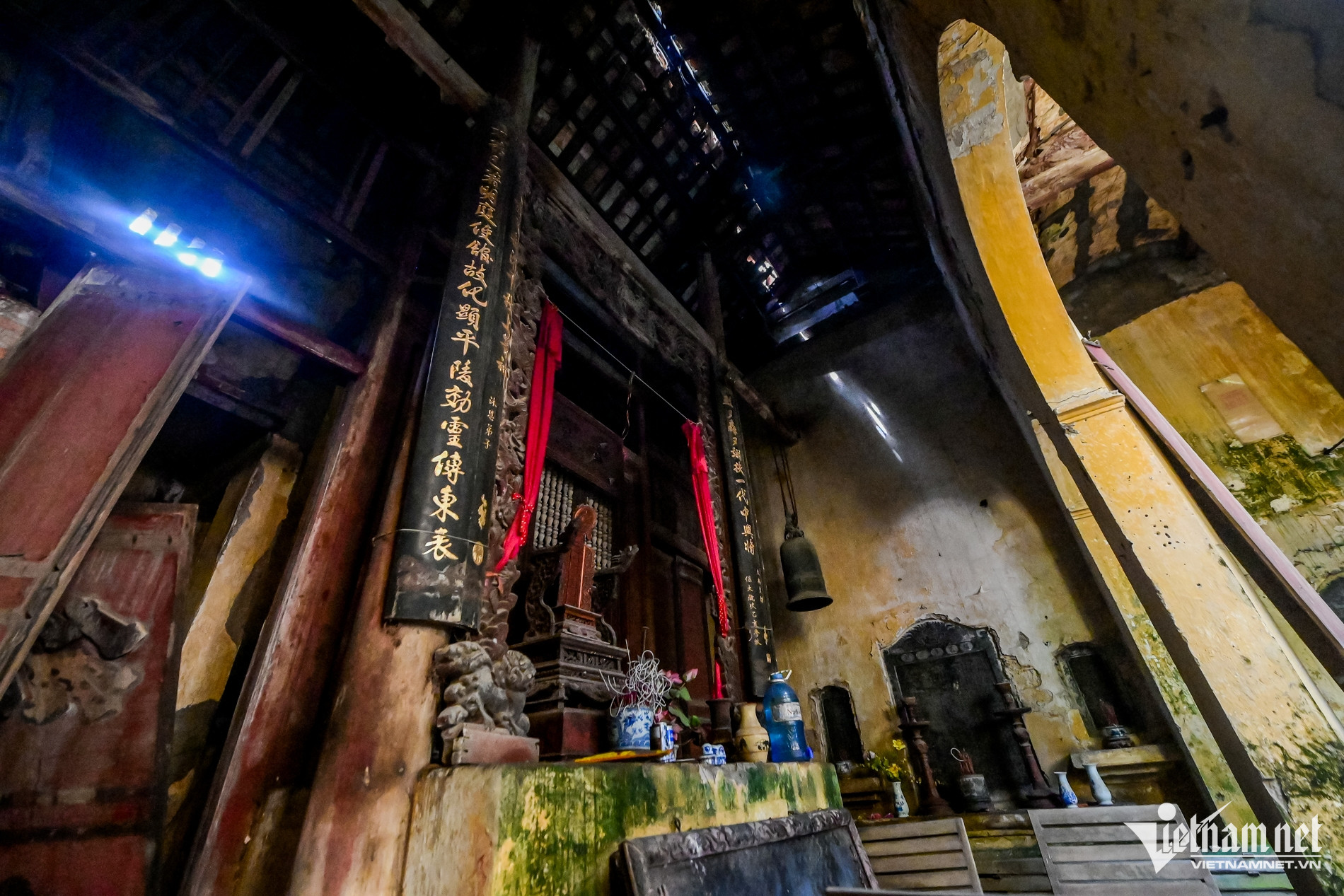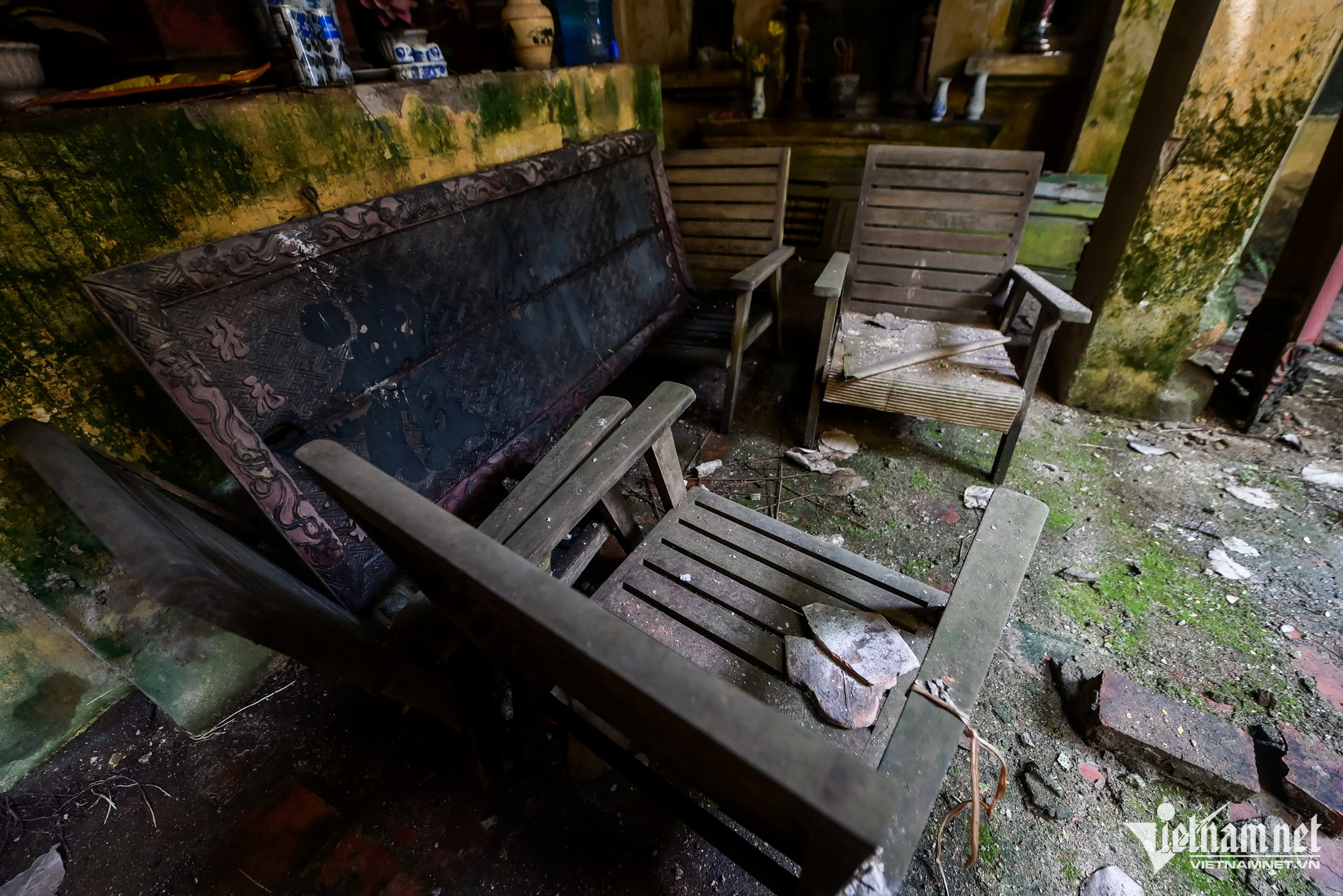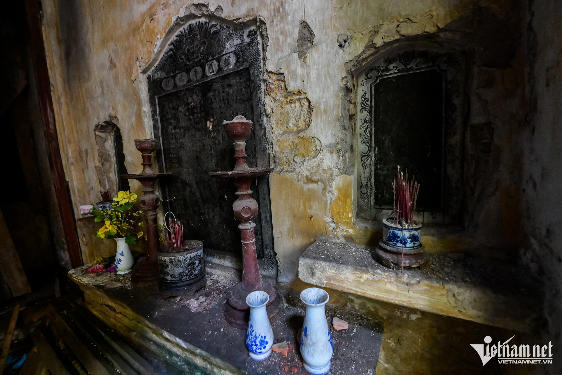 Gian thờ không còn người thường xuyên lui đến hương khói đã bị rêu mốc, phủ bụi.