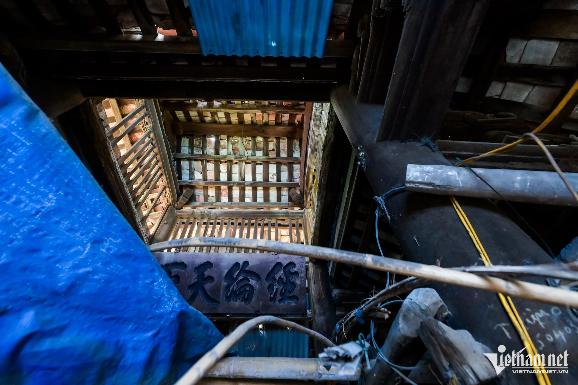 Những bức hoành phi, câu đối xưa đã phai màu theo thời gian, bị hư hỏng nặng.