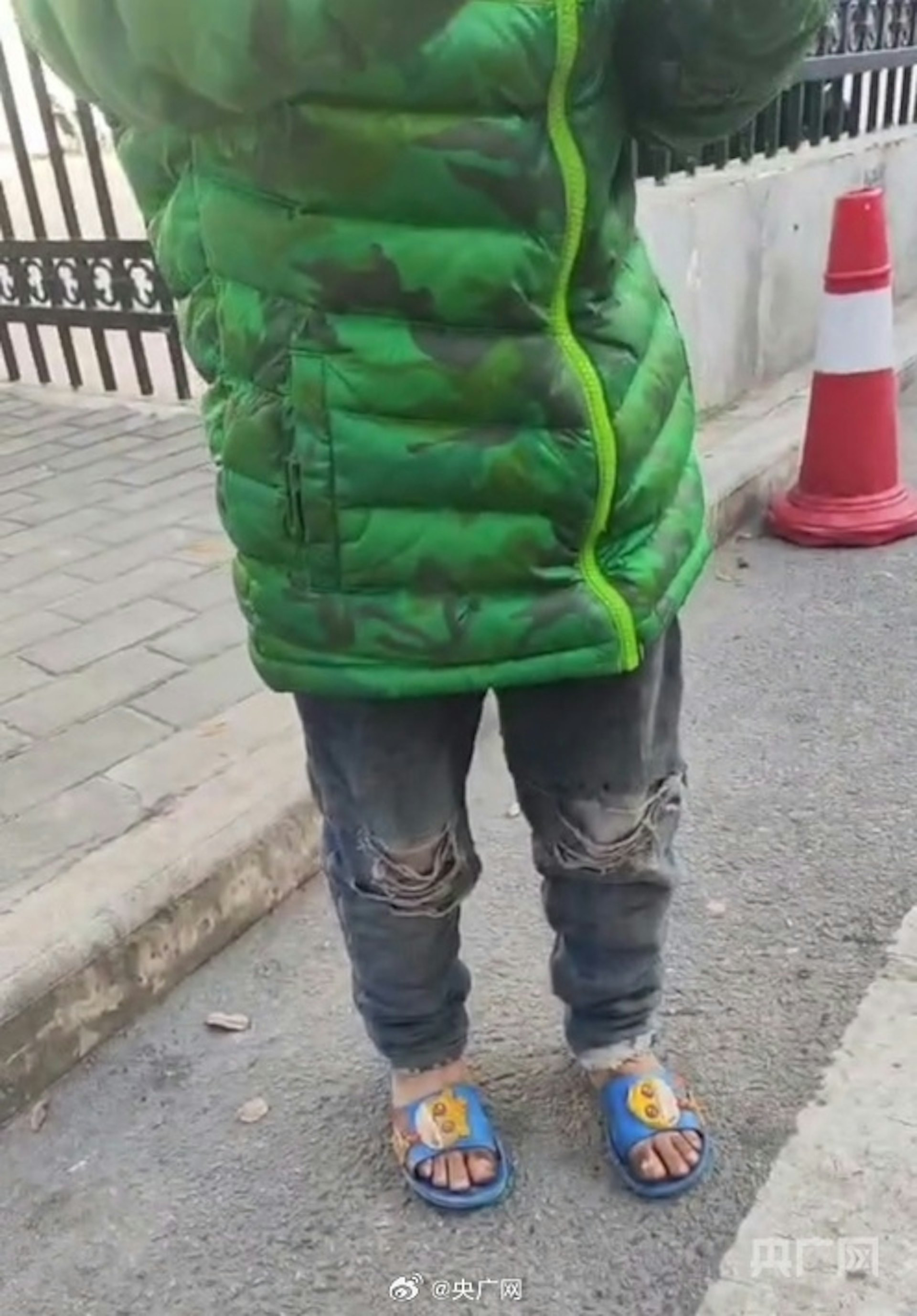 Hóa ra giữa trời đông, em chỉ có một chiếc áo khoác mỏng manh, không đủ để giữ ấm cơ thể. Em được người qua đường ghi lại cảnh giữa mùa đông vẫn đi dép lê và nhặt đồ ăn trên đường phố, khiến người dùng mạng vô cùng xót xa.